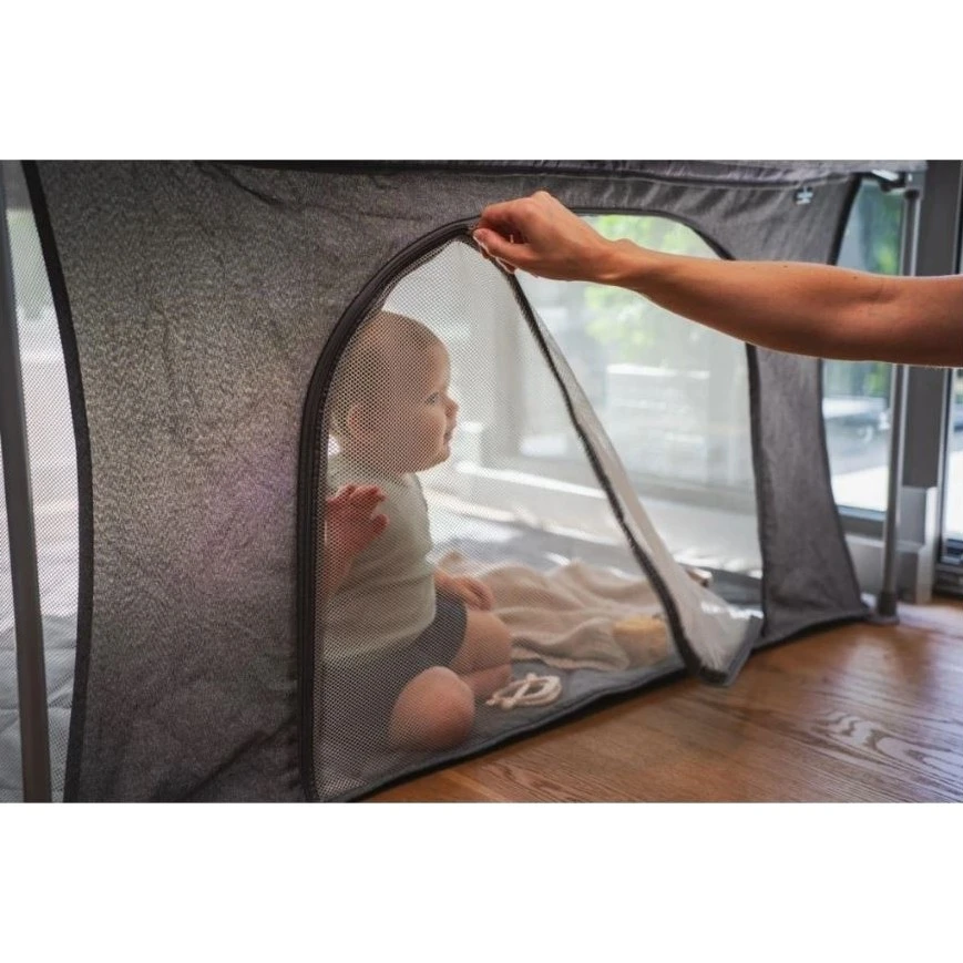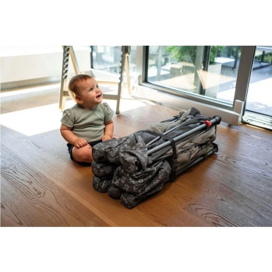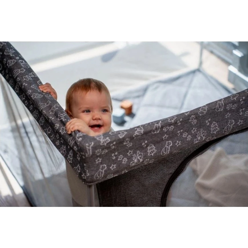 Všestranné využití ohrádky Kidnort Snoen umožňuje její použití nejen doma, ale i na cestách, díky její lehké konstrukci a snadnému přenášení.