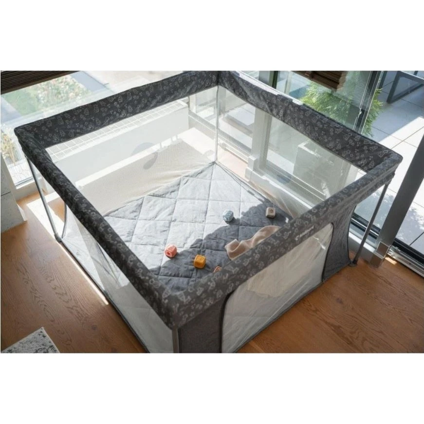 Bezpečnost a stabilita jsou zajištěny pevnou konstrukcí, která poskytuje spolehlivou oporu pro vaše dítě během hraní. Praktické rozměry ohrádky umožňují její umístění i v menších prostorech, aniž by zabírala příliš místa. Přesto poskytuje dostatek prostoru pro pohodlné hraní vašeho dítěte.