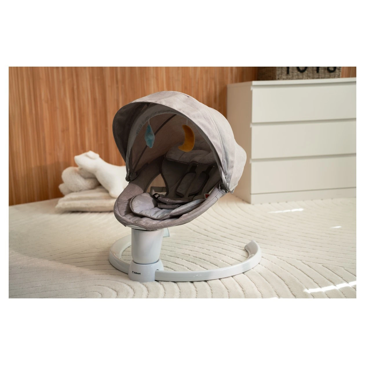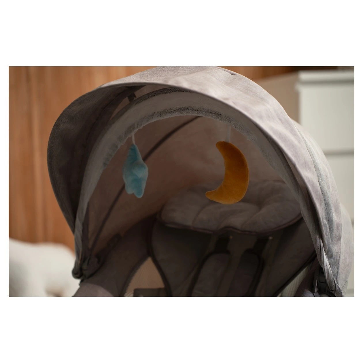 Elektrické houpátko Kidnort Drom je ideálním pomocníkem pro rodiče, kteří chtějí svému miminku dopřát klidný a pohodlný odpočinek. Díky 5 nastavitelným rychlostem houpání lze intenzitu pohybu přizpůsobit individuálním potřebám dítěte, což napomáhá jeho uklidnění a snadnějšímu usínání.Pro vytvoření příjemné atmosféry je houpátko vybaveno funkcí přehrávání hudby přes Bluetooth a USB. Rodiče tak mohou zvolit oblíbené melodie svého dítěte a podpořit jeho relaxaci. Ovládání je snadné díky přehlednému panelu s ikonami a dálkovému ovladači, které umožňují nastavení režimu, rychlosti i času houpání bez nutnosti přerušovat klidné chvíle miminka.