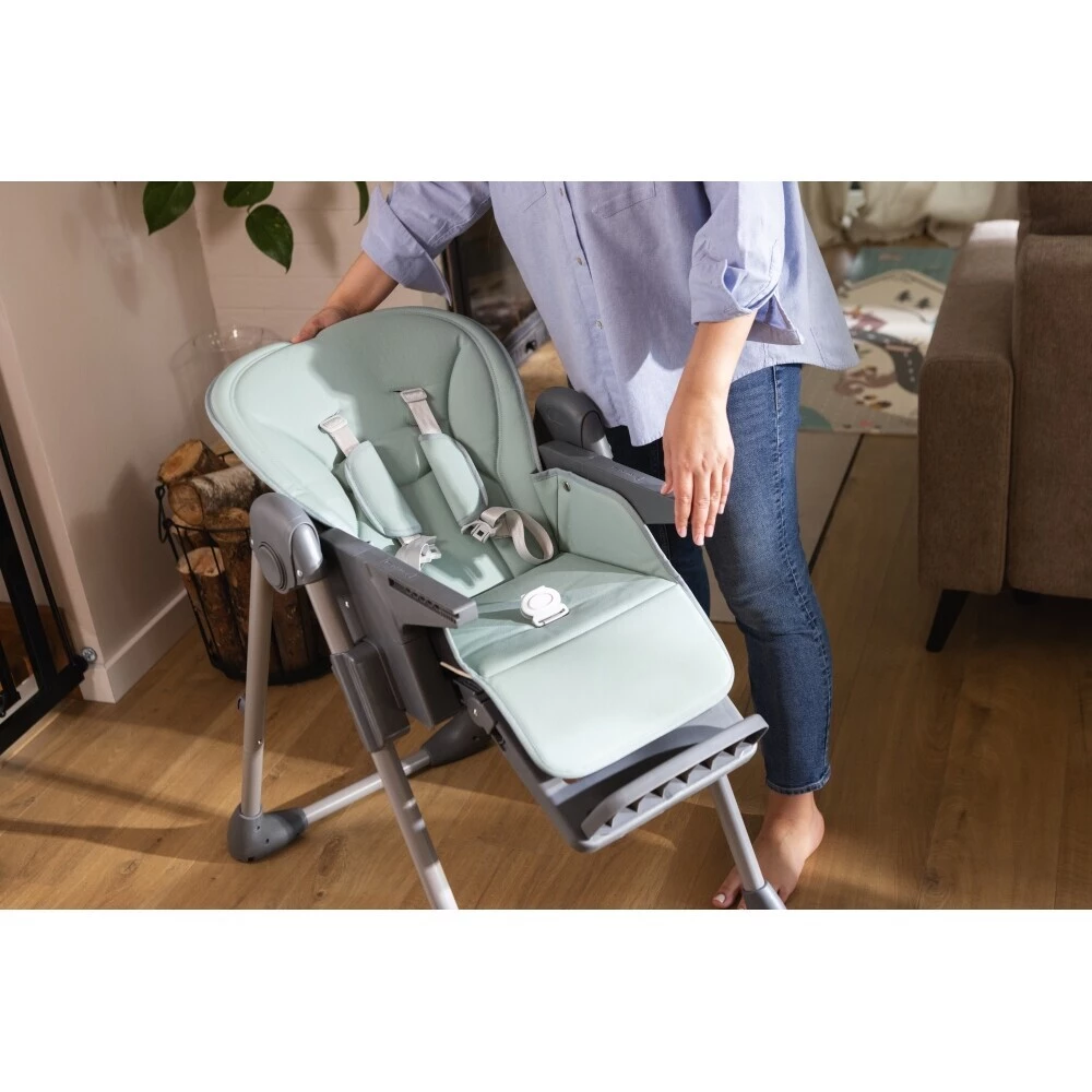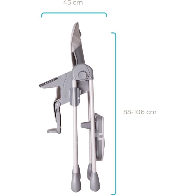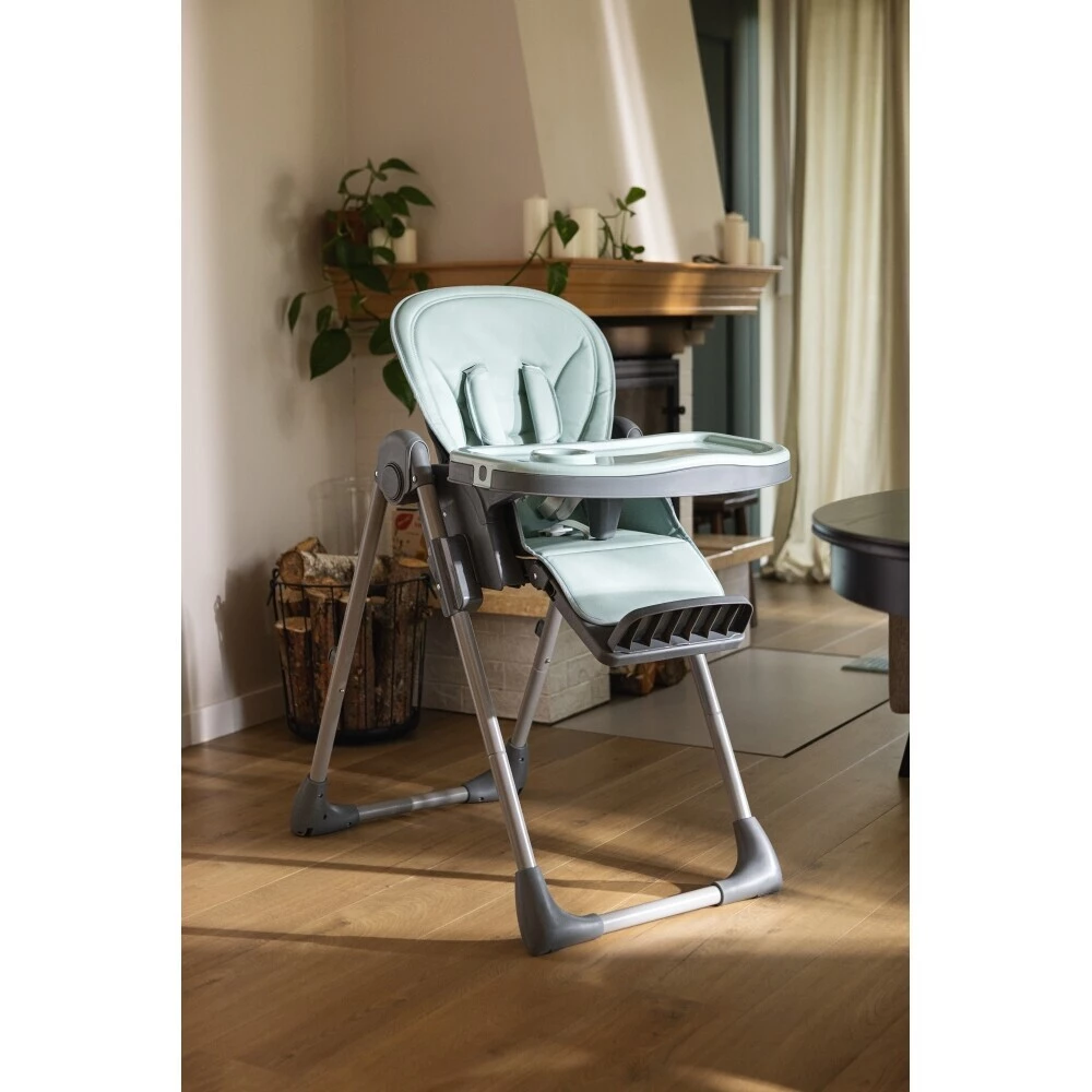 Jídelní židlička KIDNORT Jordgubbe se velmi snadno složí do kompaktního rozměru pro uskladnění. Má 2 skrytá kolečka pro snadnou manipulaci.