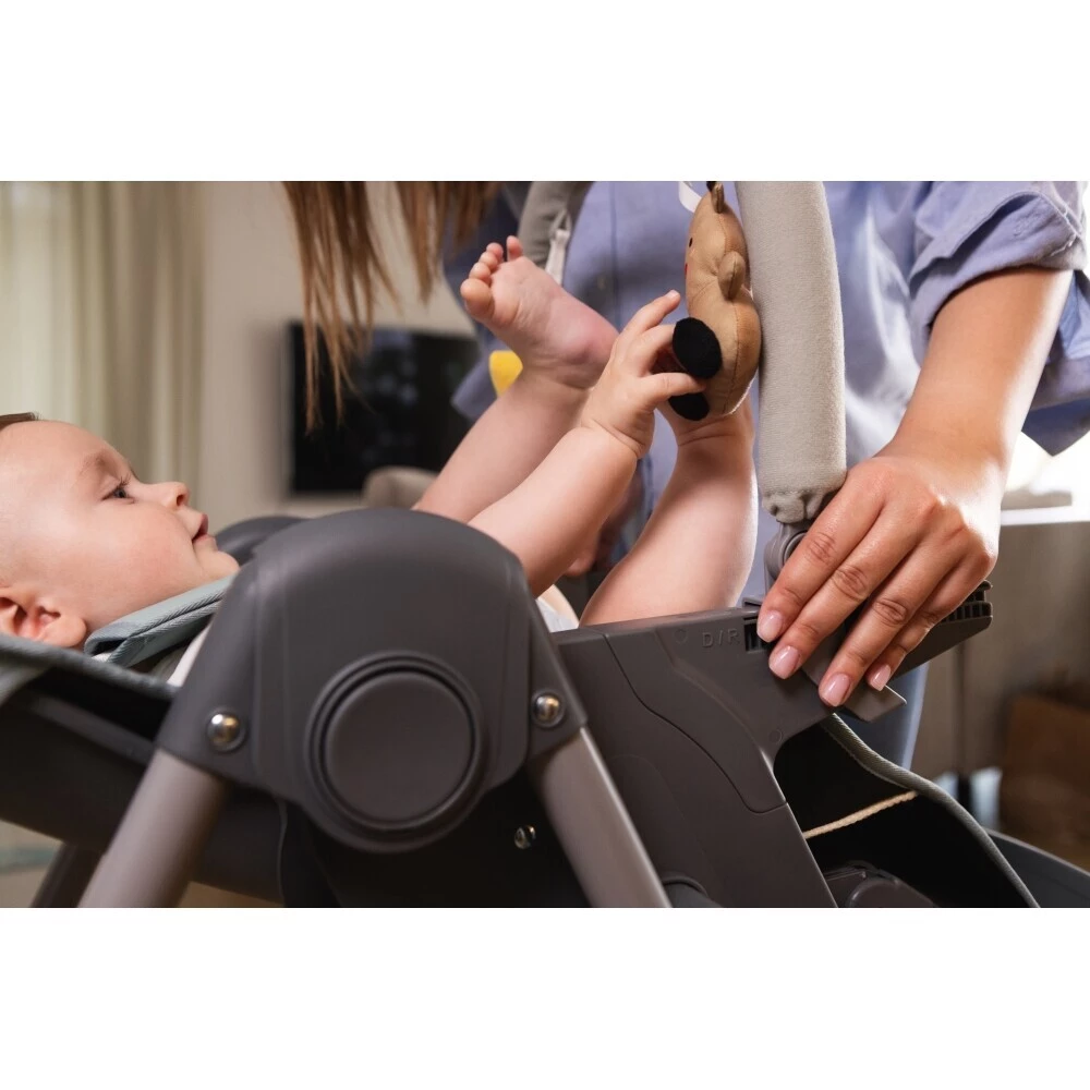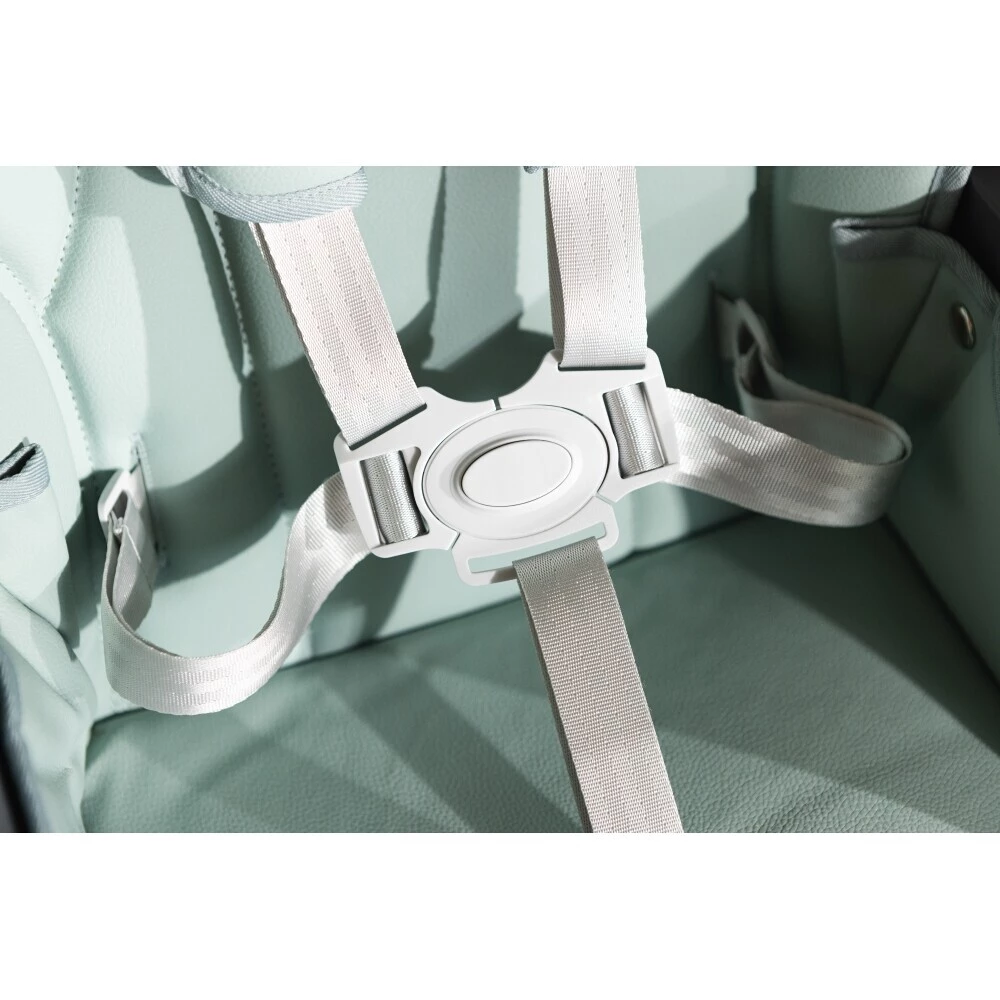 Kromě nastavitelné opěrky zad je nastavitelná také opěrka nožiček do třech poloh. Židlička má 5 bodové pásy pro maximální bezpečnost. Popruhy mají měkký potah, který je velmi pohodlný. Praktický je také úložný košík na suchý zip, který je pod židličkou.