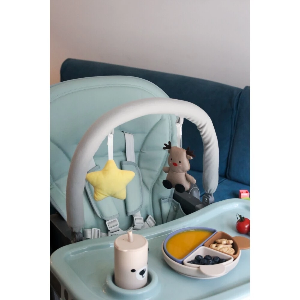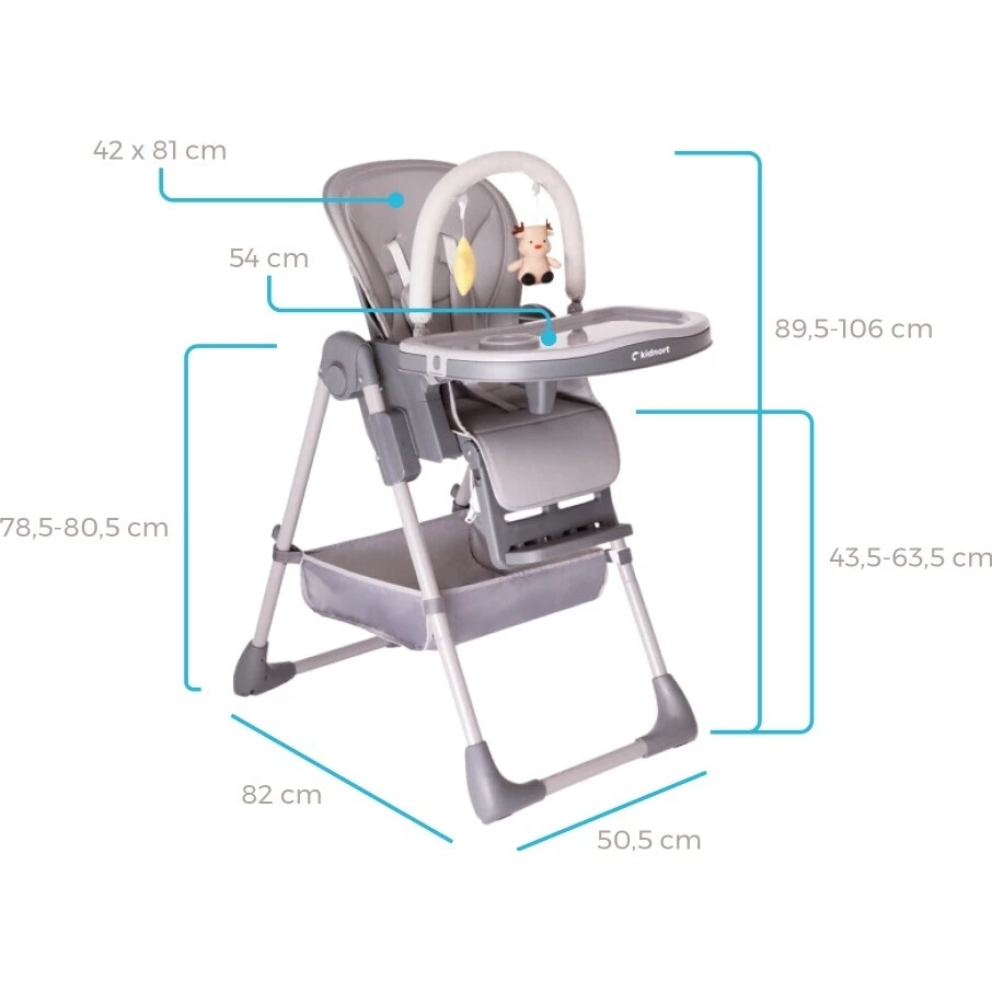 Jídelní židlička Kidnort Jordgubbe je velmi stabilní a využijete ji jako klasickou vysokou jídelní židličku, nebo jako lehačku pro menší děti. Součástí je také hrazdička s hračkami, která zaujme dětskou pozornost.Jídelní židle Jordgubbe nabízí 6 úrovní výškového nastavení, takže ji přizpůsobíte výšce vašeho jídelního stolu a malý strávník může stolovat s vámi. Židlička má jídelní tác, který má vyhrazené místo pro šálek.