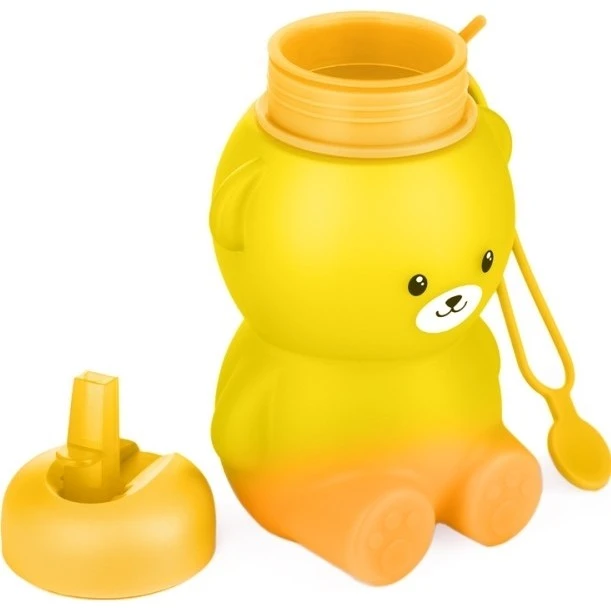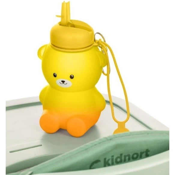 Silikonová lahvička Kidnort Retter bude díky svému tvaru zaručeně tou nejoblíbenější lahvičkou pro vaše dítko.Je vybavena praktickým brčkem, které lze uzavřít, aby se žádná tekutina nedostala ven. K lahvičce je připevněná karabina, která umožní zavěšení na rukojeť kočárku nebo na batoh.