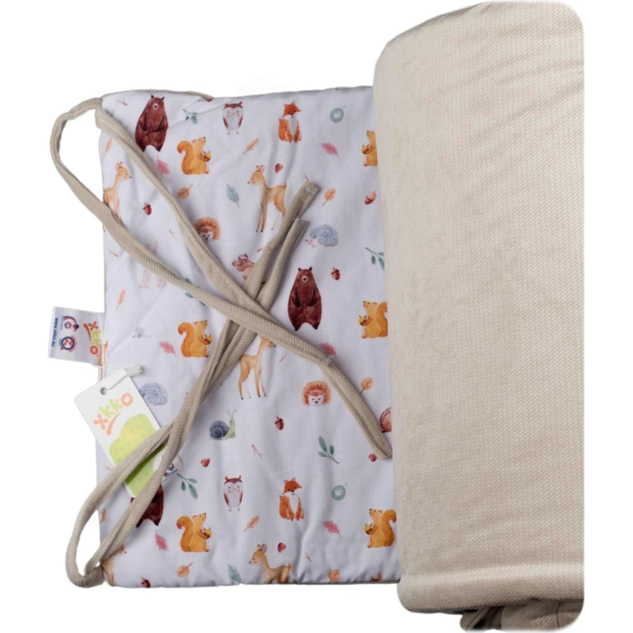 Mantinel je ideální do dřevěných postýlek, kde zabrání jak průvanu, tak tomu, aby se miminko neuhodilo o strany postýlky. Zabrání také tomu, aby dítko prostrčilo nohu či ruku skrz šprucle postýlky.Postýlku navíc udělá krásně útulnou a veselou díky autorskému tisku. Mantinel Kikko je vyrobený z tí nejjemnější bavlny a k postýlce se přivazuje tkaničkami. Díky délce 360 cm vystačí okolo celé postýlky standardního rozměru 120 x 60 cm.