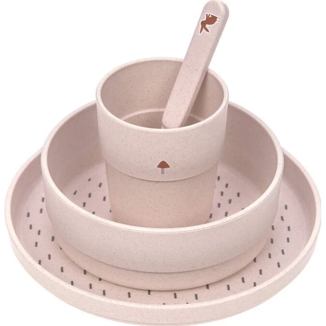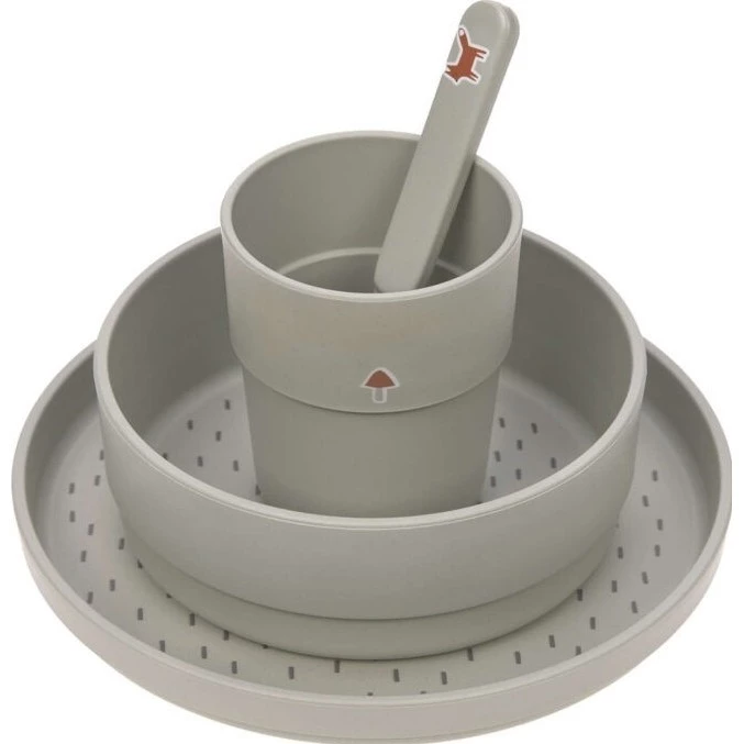Dětská jídelní sada od značky LÄSSIG přináší ideální kombinaci praktičnosti, kvality a šetrnosti k přírodě. Je navržena speciálně pro malé strávníky od 12 měsíců a díky promyšlenému designu podporuje jejich samostatnost při stolování. Sada obsahuje hrneček, lžičku, misku a talířek – tedy vše, co dítě potřebuje při každodenním jídle, a to jak doma, tak na cestách.Každý jednotlivý kus je vyroben z inovativního biokompozitu, který kombinuje polypropylen s přírodní celulózou. Tento materiál je nejen odolný a lehký, ale zároveň ekologicky šetrný. Sada je bez obsahu BPA, takže zajišťuje maximální bezpečí pro vaše dítě. Díky silikonovému kroužku na spodní straně nádobí zůstává všechno na svém místě, a i první pokusy o samostatné jídlo tak probíhají s menším nepořádkem.