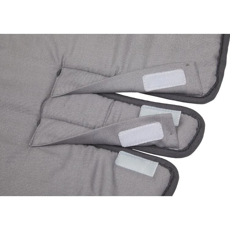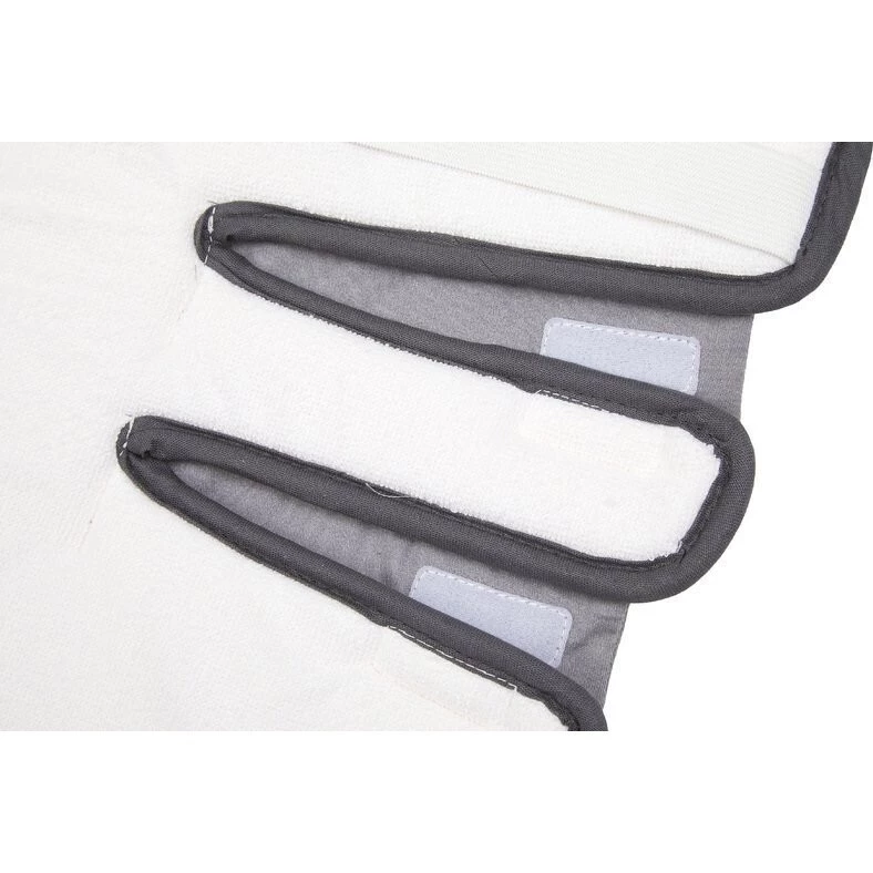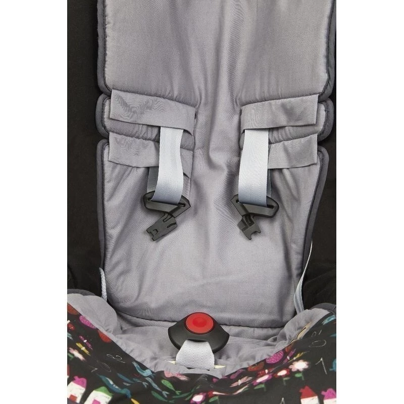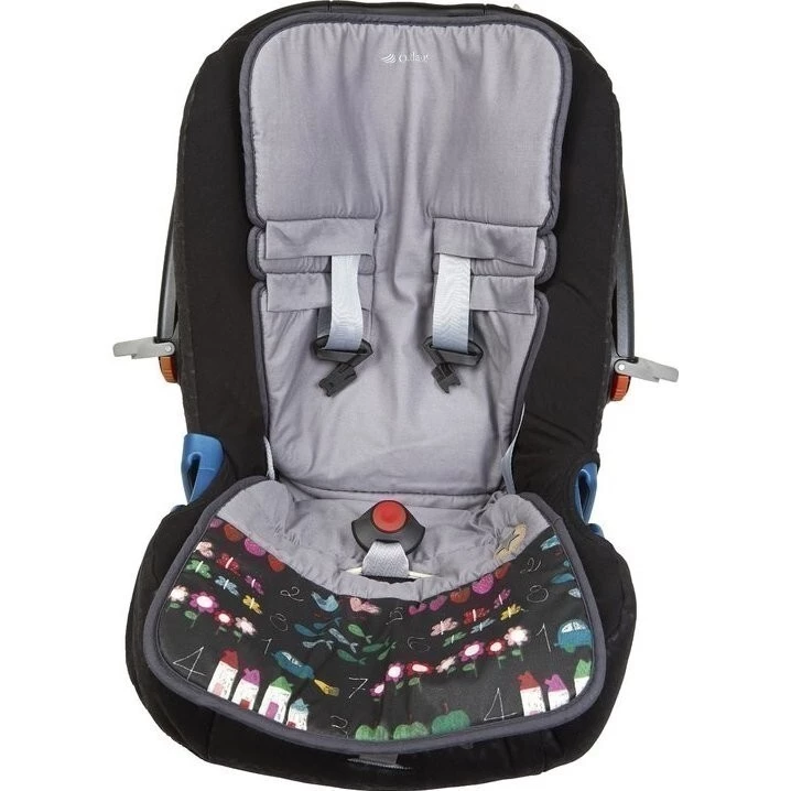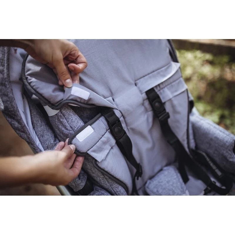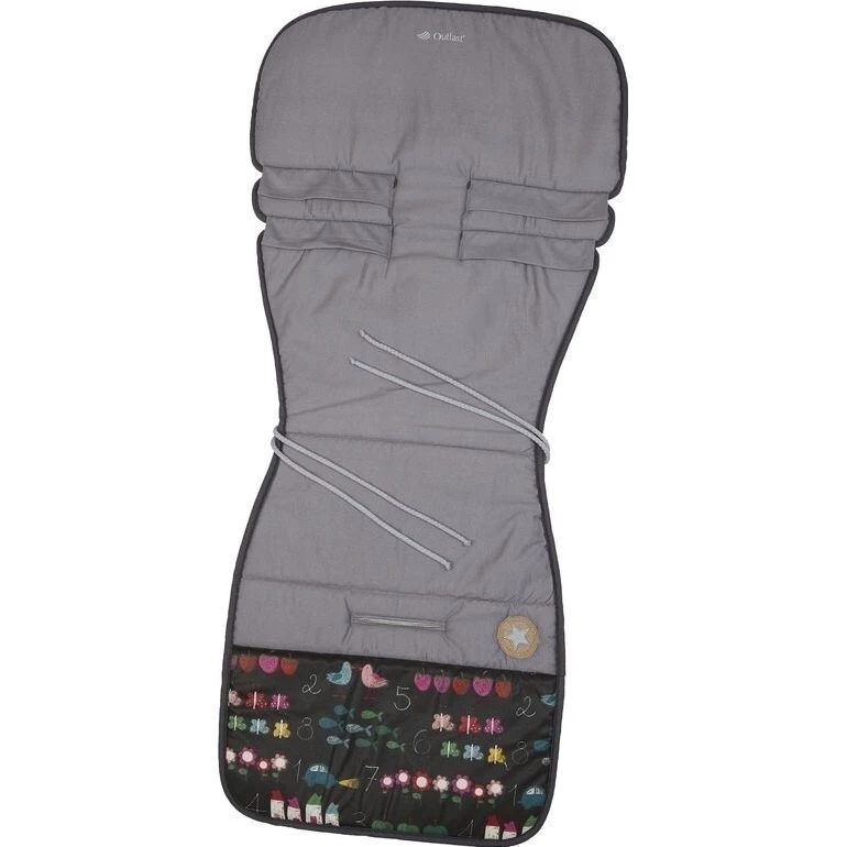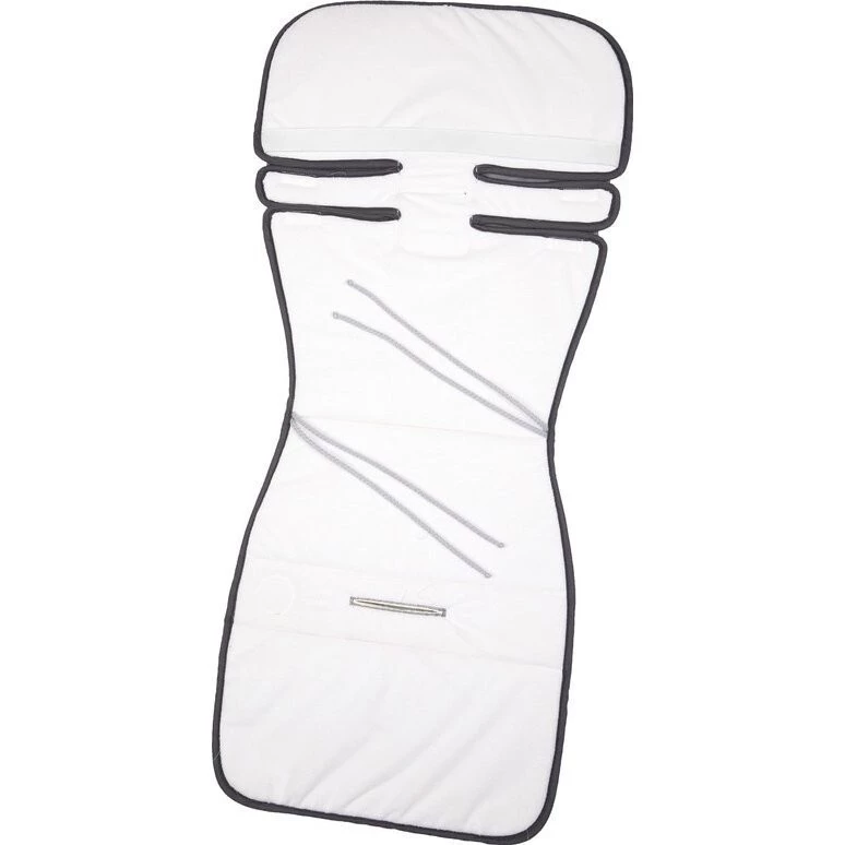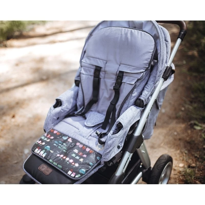 Spodní strana podložky je z nepropustného materiálu, který je ale velmi prodyšný. Tam, kde má dítko botičky, je omyvatelná. Pro snadné připevnění na kočárek má vložka gumu a šňůrky.