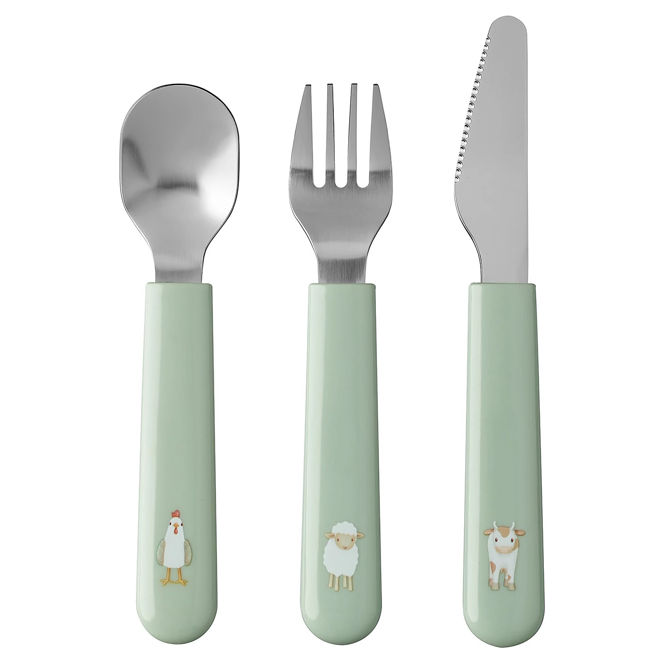 Krásná sada dětského příboru Little Dutch je vhodná cca od 3 let. Rukojeti se dětem snadno drží a nůž má bezpečný zoubkovaný okraj.Příbor je vyrobený z kvalitní nerezové oceli a konec rukojeti zdobí dětské obrázky. Je vhodný do myčky.