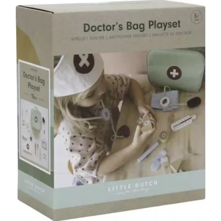 S doktorským setem Little Dutch bude každý pacient vašich dětí okamžitě vyléčený. V praktické brašně najde malá lékařka či lékař vše, co bude k ošetření potřebovat - 4 barvy náplasti, dřevěný teploměr, stříkačku, tubu s mastí, stetoskop, rexlefní kladívko, měřič krevního tlaku, otoskop a také čepičku.Balení: 9,4 x 23 x 19 cm