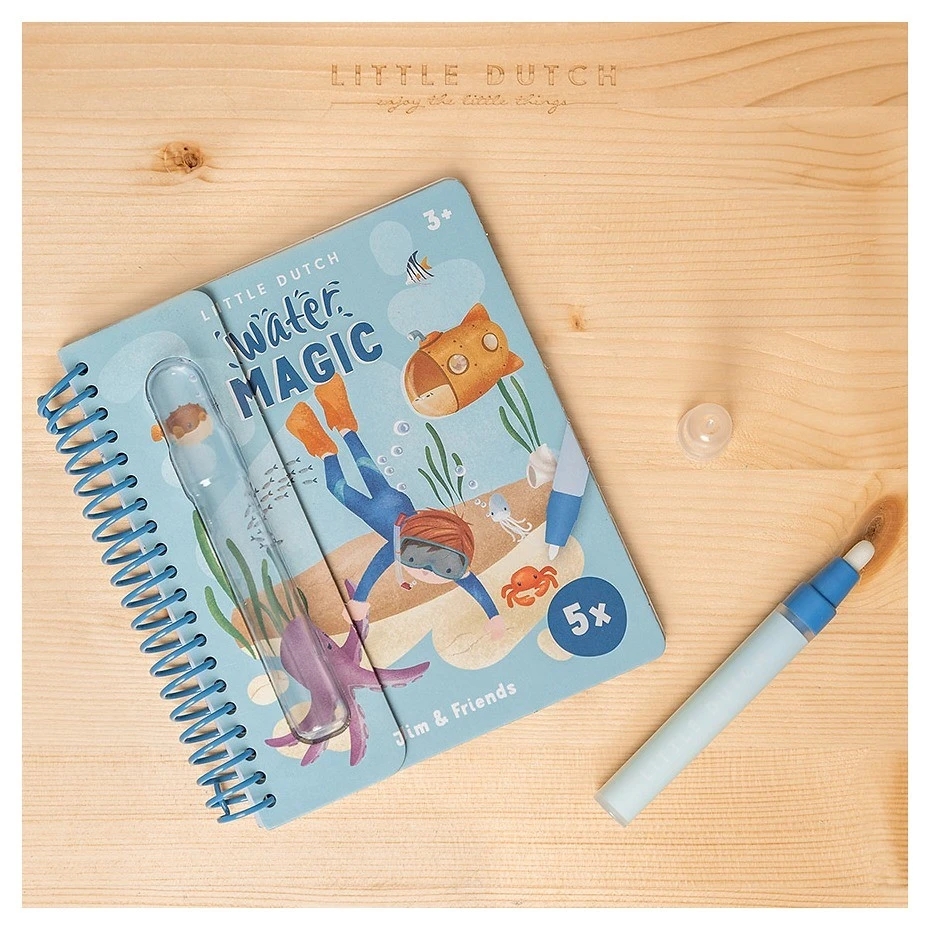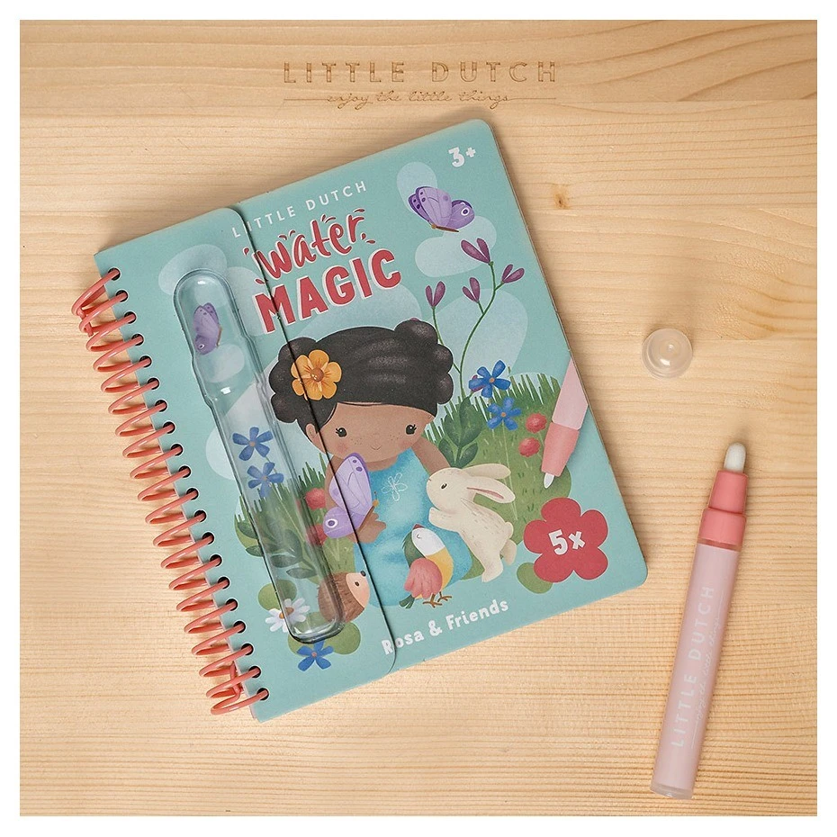Little Dutch kniha kouzlení s vodou je inovativní a zábavná hračka, která přináší dětem jedinečný zážitek z malování bez nepořádku. Tato kouzelná knížka obsahuje pět ilustrovaných stránek.Každá stránka skrývá krásné ilustrace, které se odhalují pomocí speciálního vodního fixu, jenž je součástí balení. Stačí fix naplnit vodou a při kontaktu s papírem se postupně objevují barevné obrázky, které po zaschnutí opět zmizí, což umožňuje opakované použití.