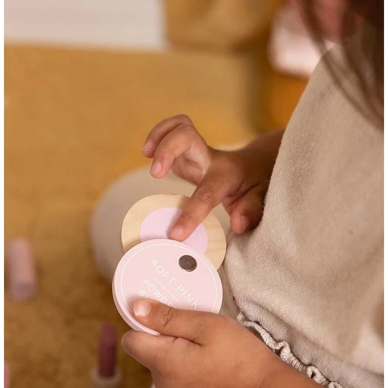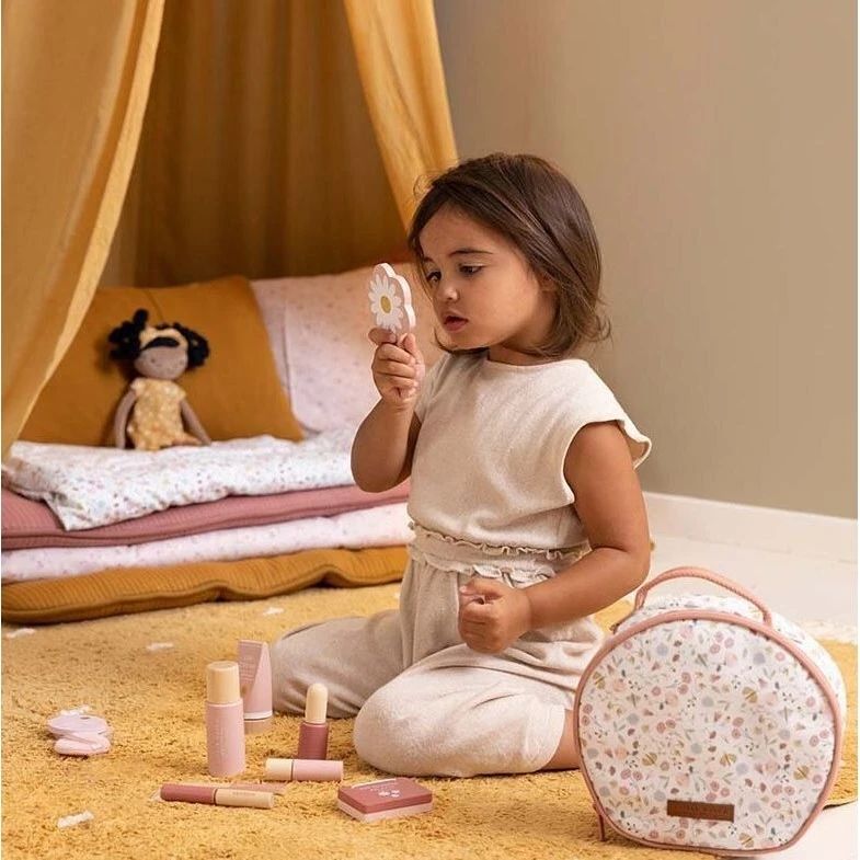 Tato kosmetická taštička s příslušenstvím Little Dutch nabízí všechno, co bude každá malá parádnice potřebovat.Taštička je na zip a skrývá v sobě zrcátko, parfém, krém, rtěnku, lak na nehty, pudr, labutěnku, oční stíny, řasenku a pilník na nehty. Vše z kvalitního dřeva, které vydrží i pro další generace.