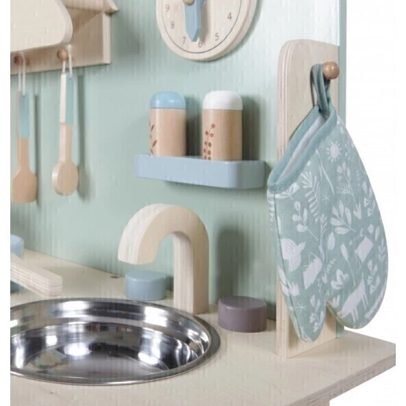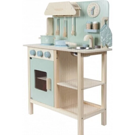 Každý malý kuchař nebo kuchařka potřebují svoji vlastní kuchyňku. Little Dutch nabízí spoustu detailů, které mohou děti využít podle své fantazie.Kuchyňka Little Dutch obsahuje troubu s otevíracími dvířky, polici pro uložení věcí, dřez s kohoutkem, hodiny a sporák se dvěma varnými plotýnkami. Ve výbavě kuchyňky nechybí nádobí, pánve, chňapka a slánka s pepřenkou. Knoflíky plynového sporáku a trouby pži zapnutí cvaknou.