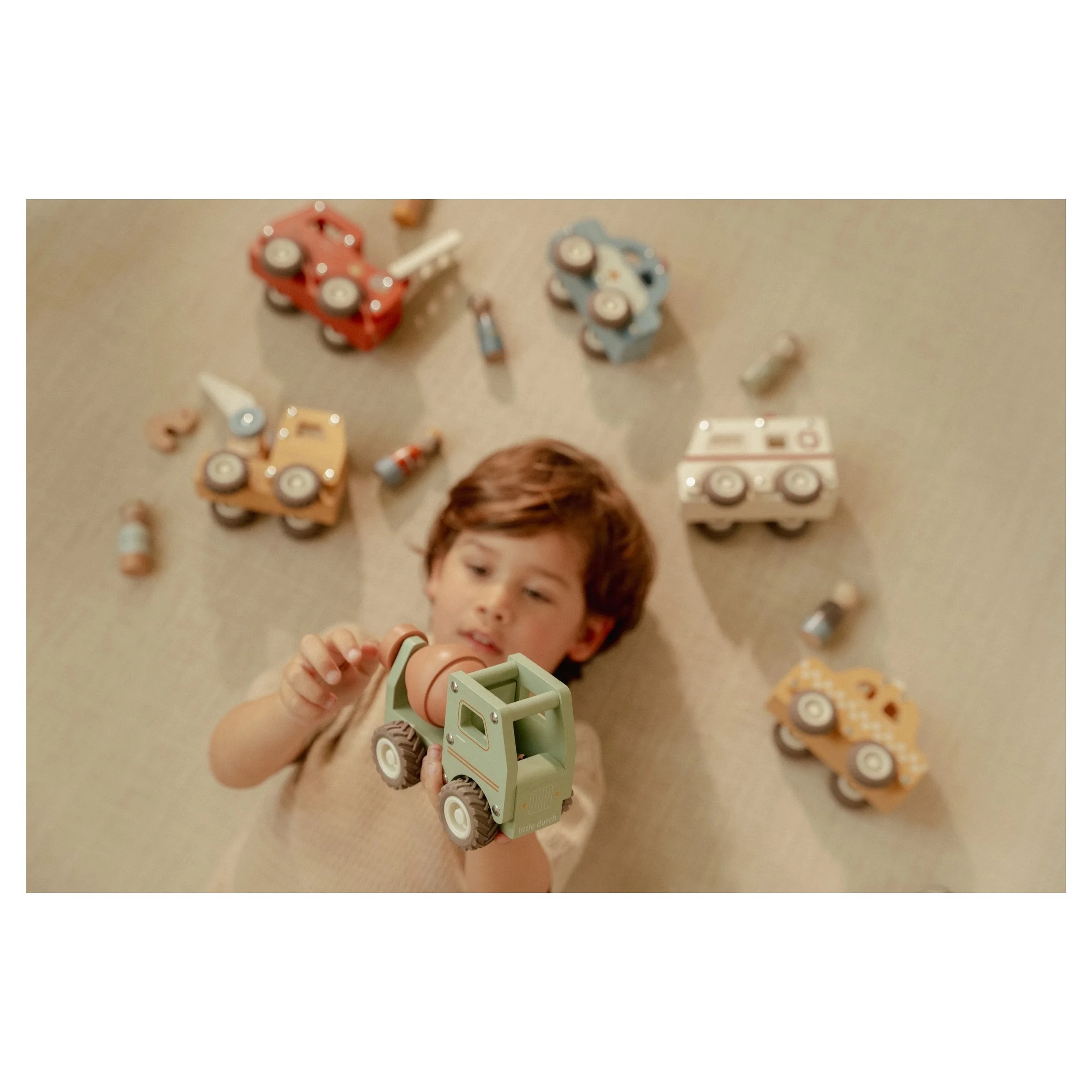 Součástí balení je také dřevěná figurka stavbyvedoucího, která obohacuje hru a umožňuje dětem vytvářet vlastní příběhy a scénáře. Figurka je navržena tak, aby se pohodlně vešla do kabiny náklaďáku.
