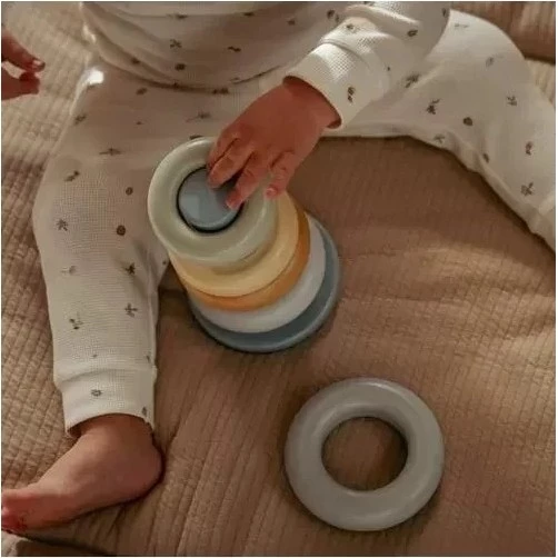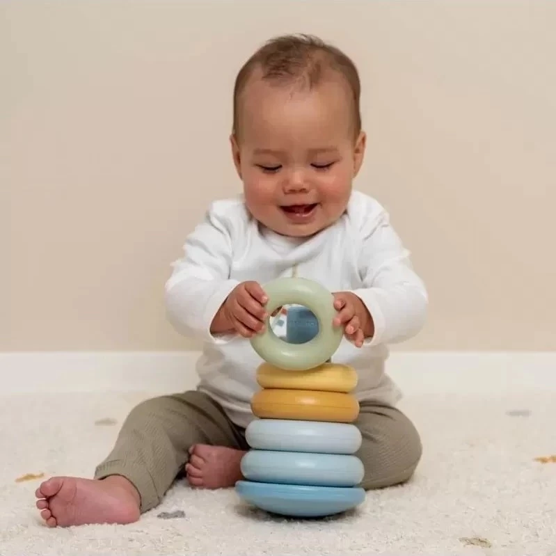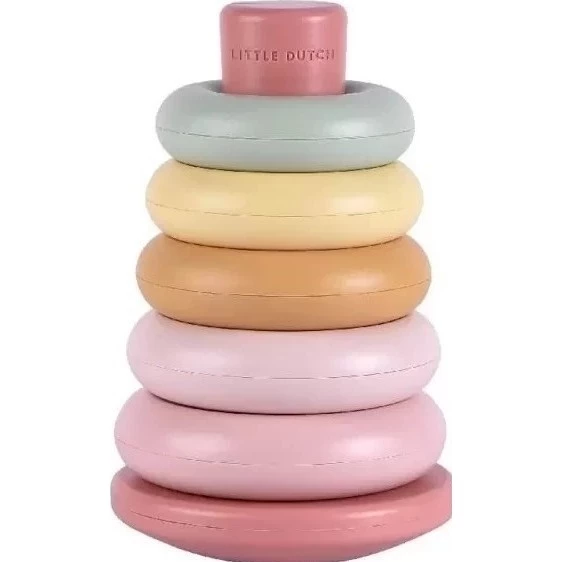Klasické nasazování kroužků je oblíbenou hrou pro nejmenší, které skvěle rozvíjí jemnou motoriku i úchop.Nasazovací kroužky Little Dutch jsou vyrobené z kvalitního plastu v krásných barvách. Kroužky se dětem skvěle drží a stojak se s kroužky hezky pohupuje.