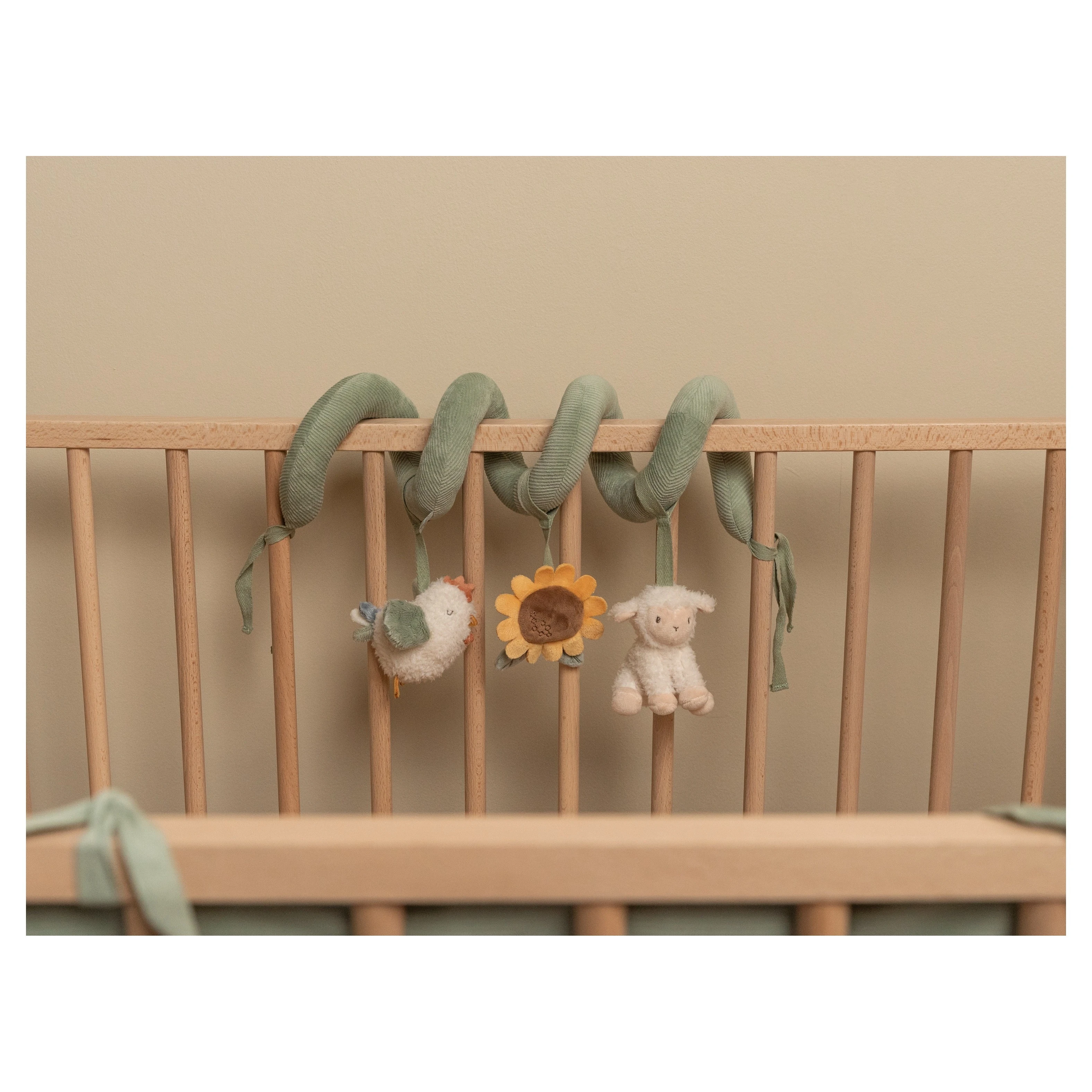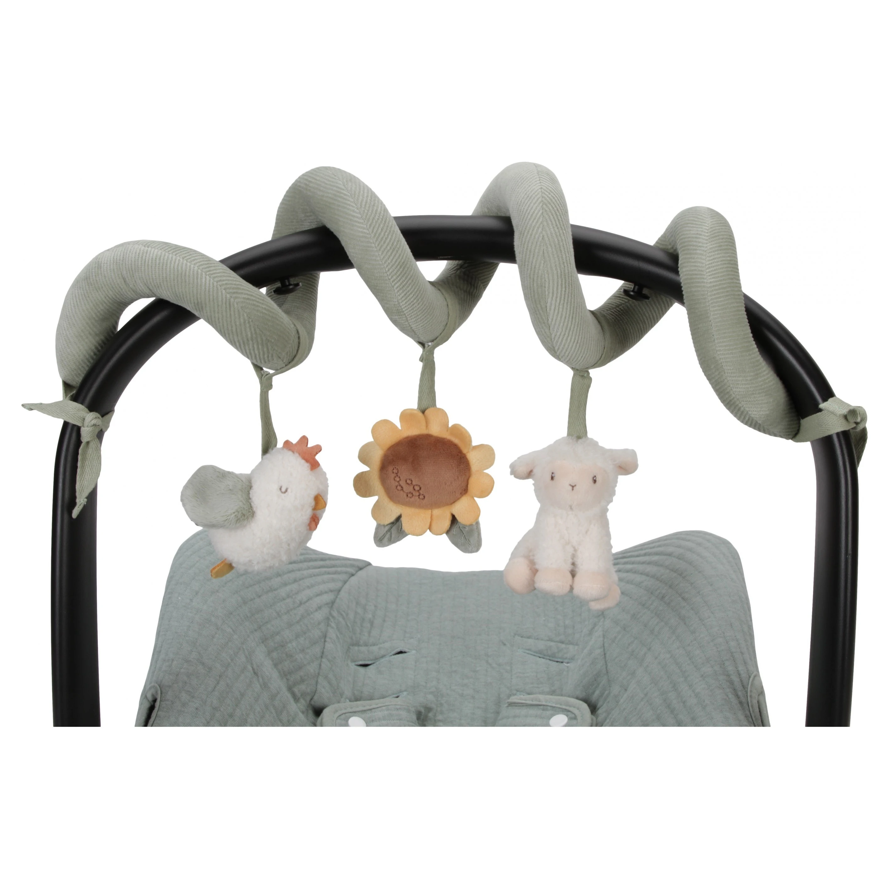 Little Dutch Spirála Farma je interaktivní textilní hračka navržená pro zábavu a stimulaci smyslů vašeho miminka. Tato spirála je ideální pro použití v postýlce, kočárku nebo autosedačce, kde poskytuje nekonečné možnosti objevování a hraní.Spirála je vybavena třemi zavěšenými hračkami ve tvaru slepičky, ovečky a slunečnice. Každá z těchto hraček nabízí různé smyslové podněty: