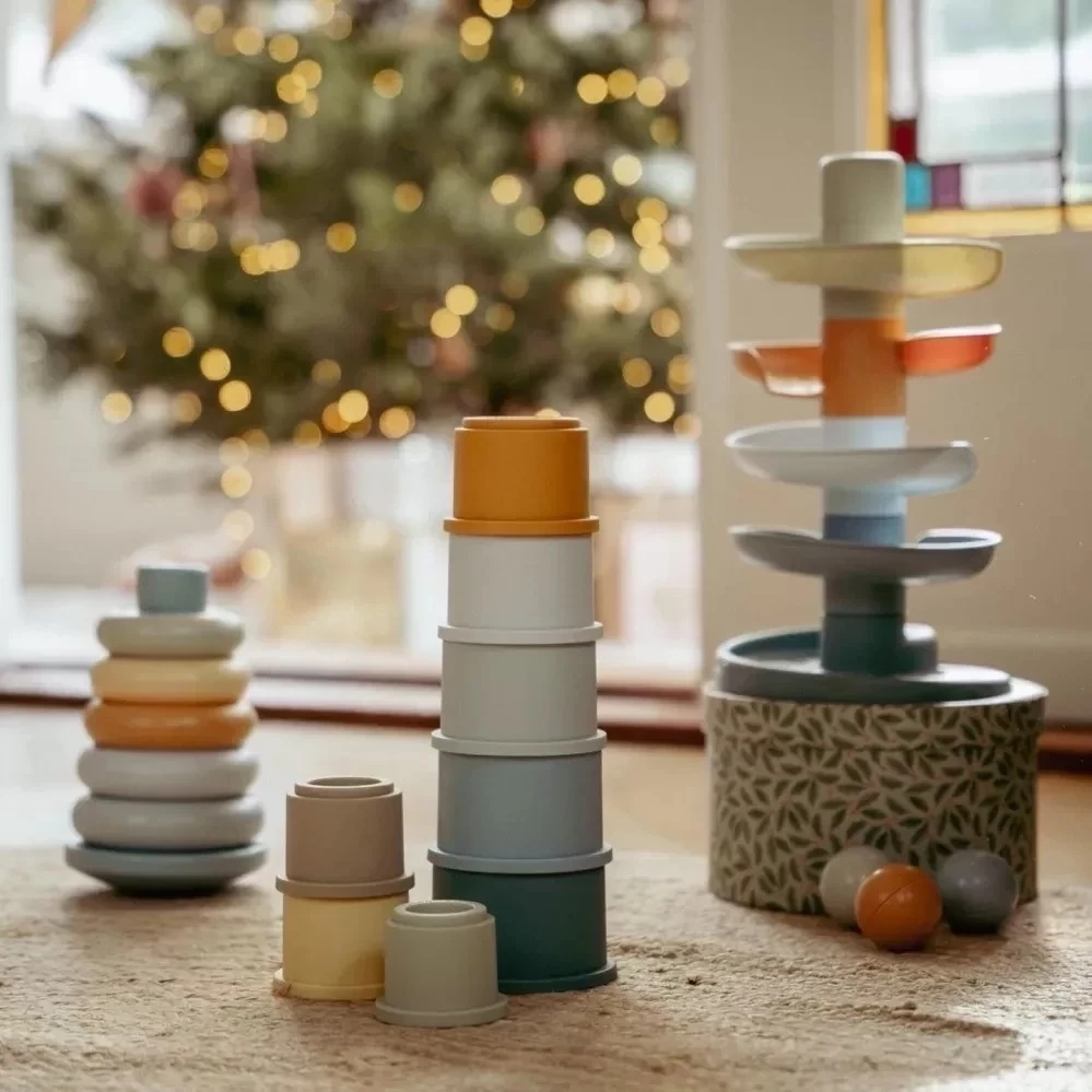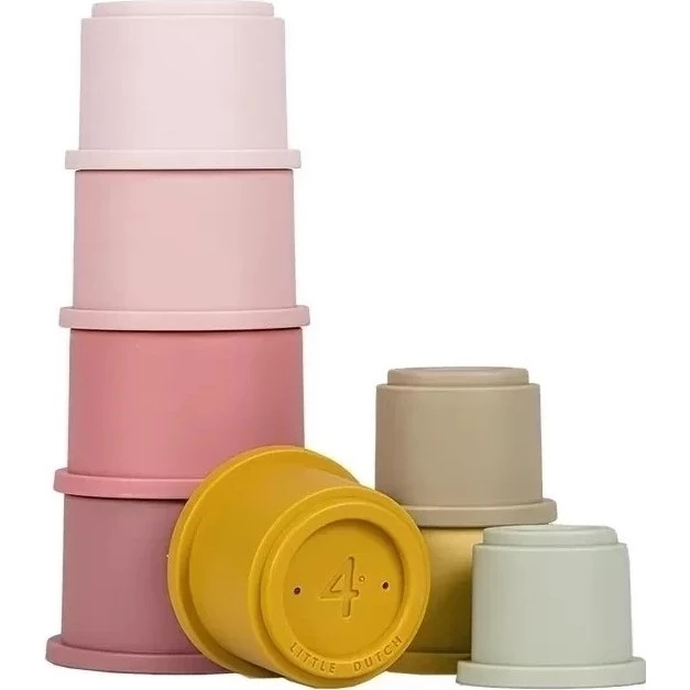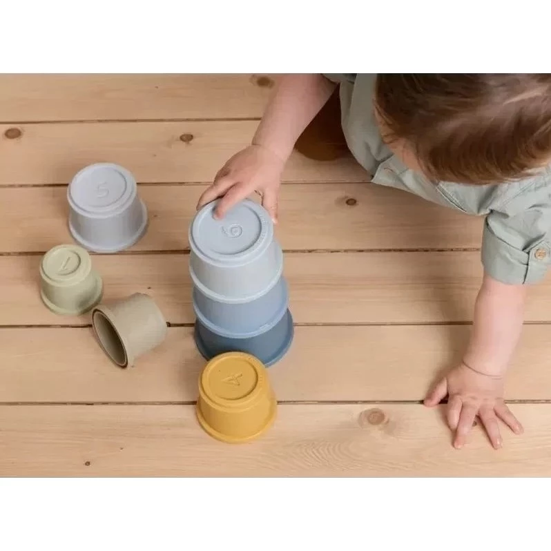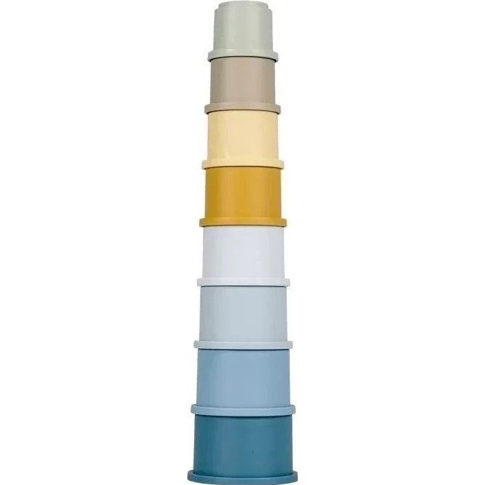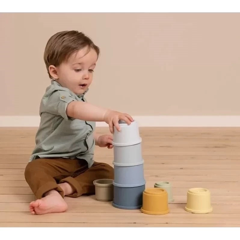 Sada kelímků dětem nabízí nespočet možností ke hře. Kelímky je možné skládat na sebe nebo do sebe. je možné si na nich cvičit barvy, ale i čísla.Little Dutch stohovací kelímky jsou vyrobené z kvalitního plastu a celková výška po postavenín věže je 43 cm.