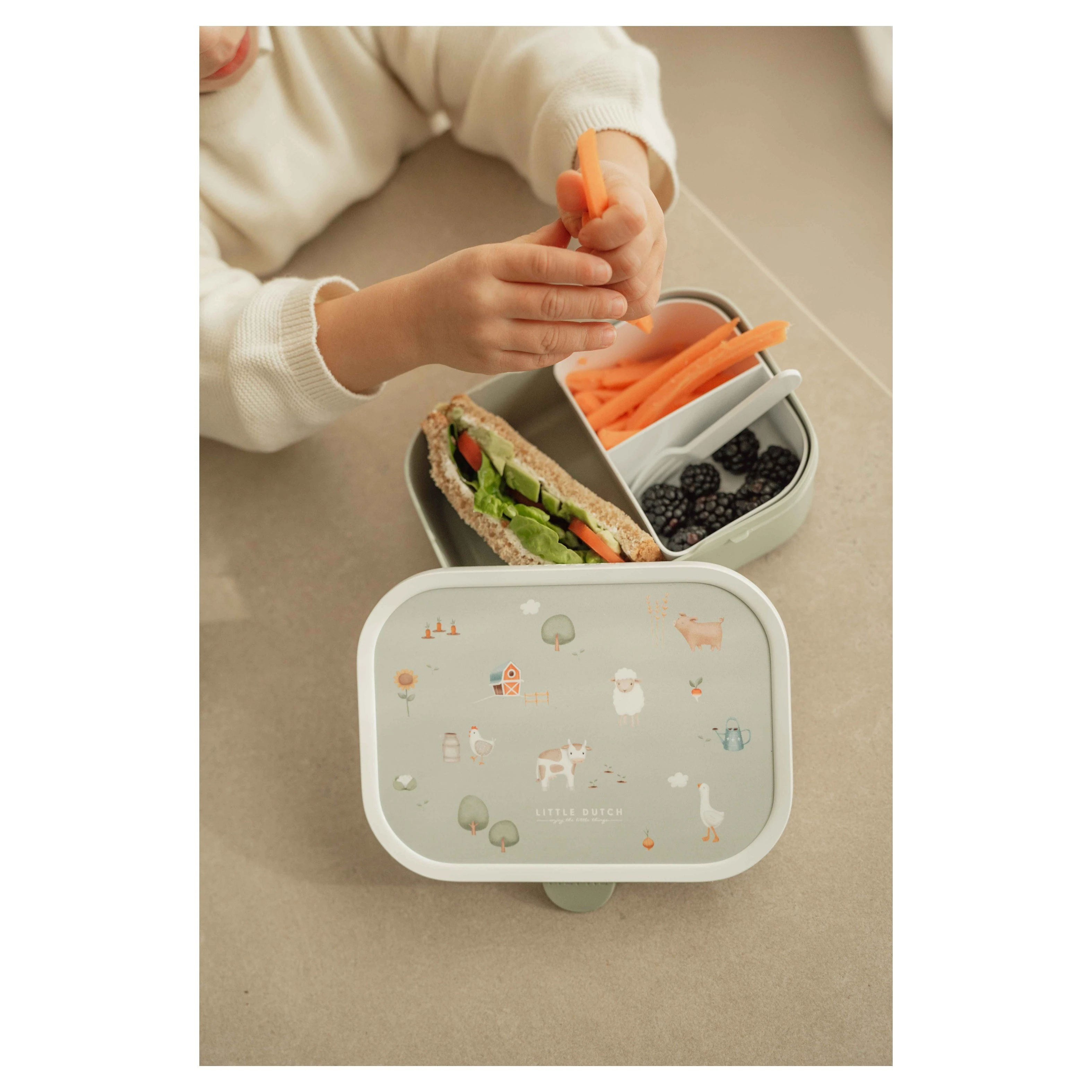 Svačinový set Little Dutch je ideálním řešením pro každodenní svačiny vašich dětí, ať už ve škole, školce nebo na výletech. Tato praktická sada kombinuje funkčnost, bezpečnost a atraktivní design inspirovaný přírodními motivy.Sada obsahuje: