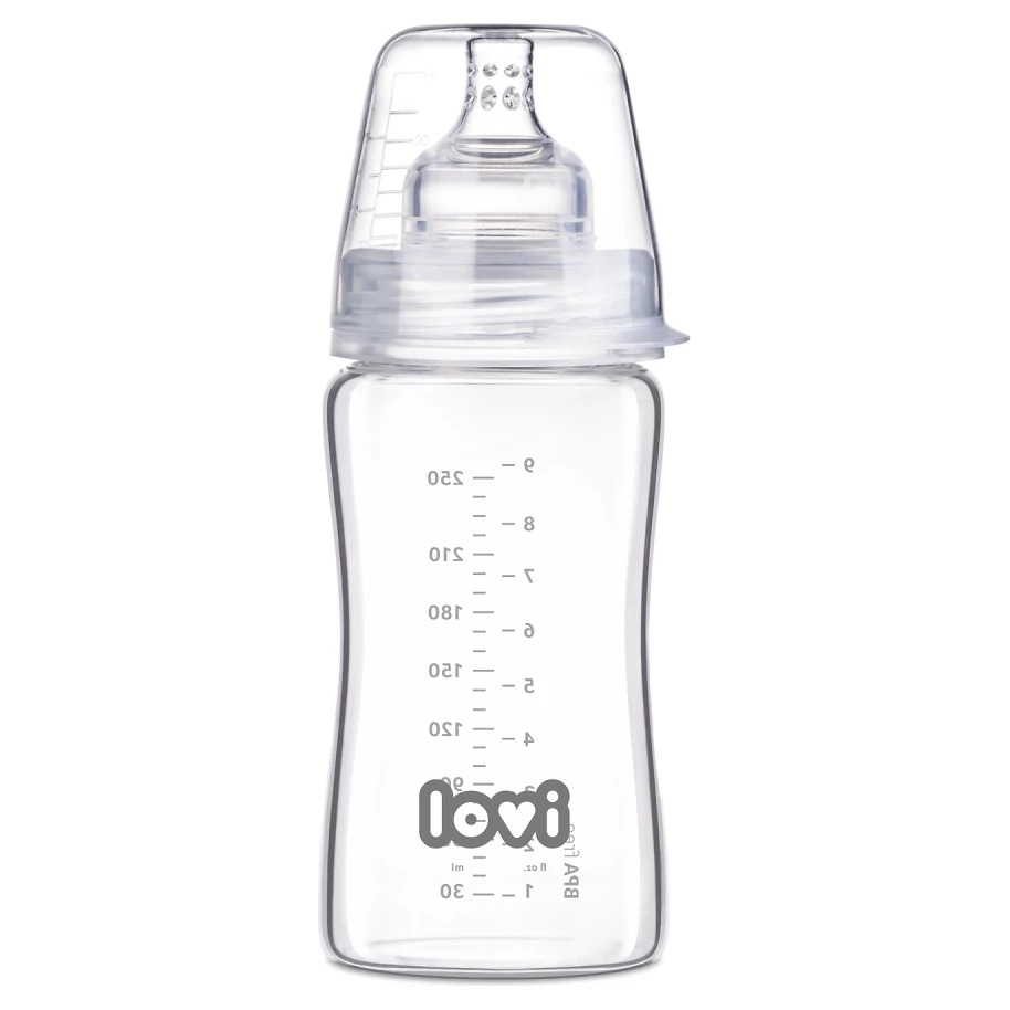 LOVI lahev skleněná je dostupná v objemech 150 ml a 250 ml. Součástí balení je skleněná lahev, dynamická savička, elastický těsnící disk a víčko se stupnicí pro přesné odměření tekutin. Lahev je vhodná pro použití v mikrovlnné troubě a lze ji sterilizovat ve vroucí vodě, což zajišťuje maximální hygienu.