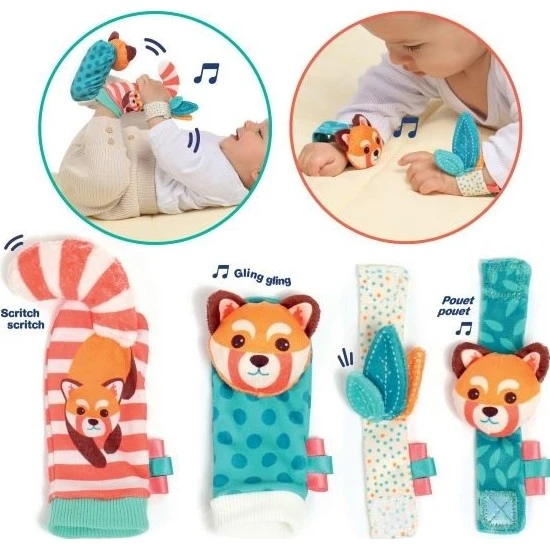Roztomilá chrastítka na zápěstí i nožičky LUDI a o zábavu je opravdu postaráno! Chrastítka jsou vhodná již od narození. Balení obsahuje 2 ponožky s chrastítky a 2 chrastítka na zápěstí, která připevníte suchým zipem.Dítko se otáčí za zvukem a sleduje výrazné barvy. Hra rozvíjí tedy jemnou i hrubou motoriku.