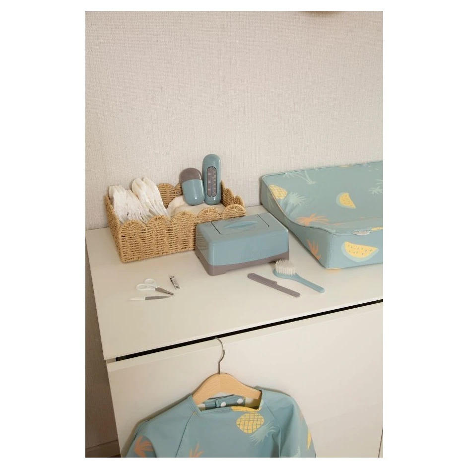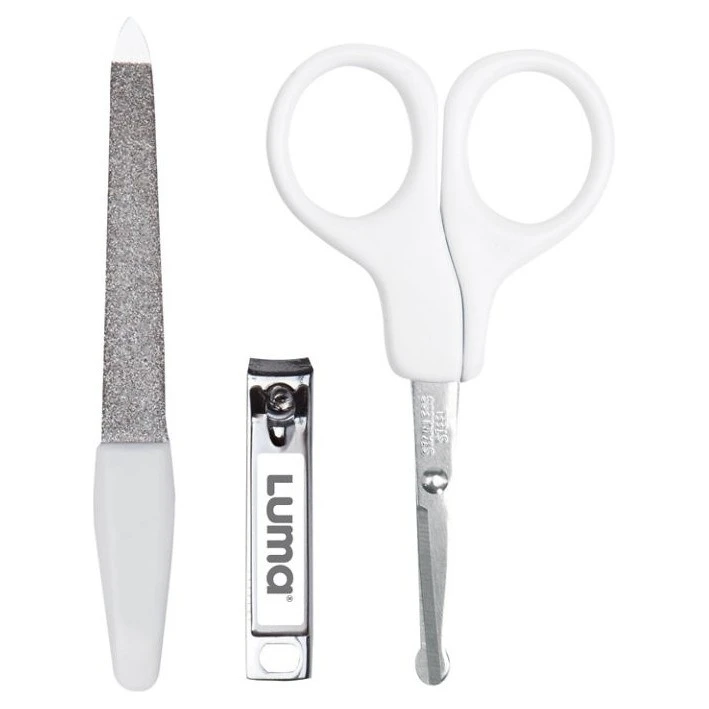 Moderní a praktická sada pro péči od Luma Babycare pro nastávající rodiče. Obsahuje 4 základní produkty, které potřebujete ke správné péči o novorozené miminko - hřebínek a kartáč, manikúru a koupací teploměr.Sada je skvělá i jako dárek, který potěší novopečené rodiče. Manikůra v pouzdře obsahuje nůžky se zakulacenými konci, pilníček na nehty a také kleštičky na nehty.