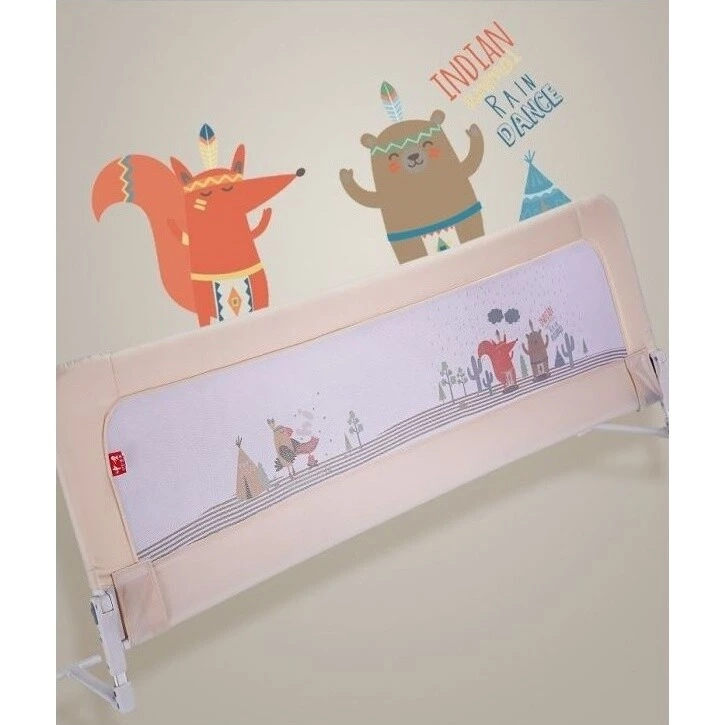 Malé děti se mnohdy během spánku vrtí a pád z postele pro ně může být nebezpečný. Postel můžete velmi snadno zabezpečit touto zábranou, která se velmi snadno instaluje a během dne je možné jí sklopit.Zábrana je dlouhá 180 cm a má na síťované části veselý obrázek, který skvěle doladí děteký pokojík. Montáž probíhá pouhým zasunutím ramen mezi spodní část postele a matrace.