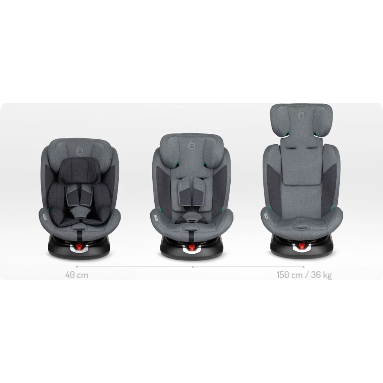 Díky otočné základně máte možnost vozit děti v autosedačce nejdříve proti směru a později jej změnit na posměrnou autosedačku. Otočením do boku získáte pohodlnou pozici pro usazení. Výškově je možné nastavit autosedačku do 11 pozic a sklon umožňuje 6 možností nastavení.