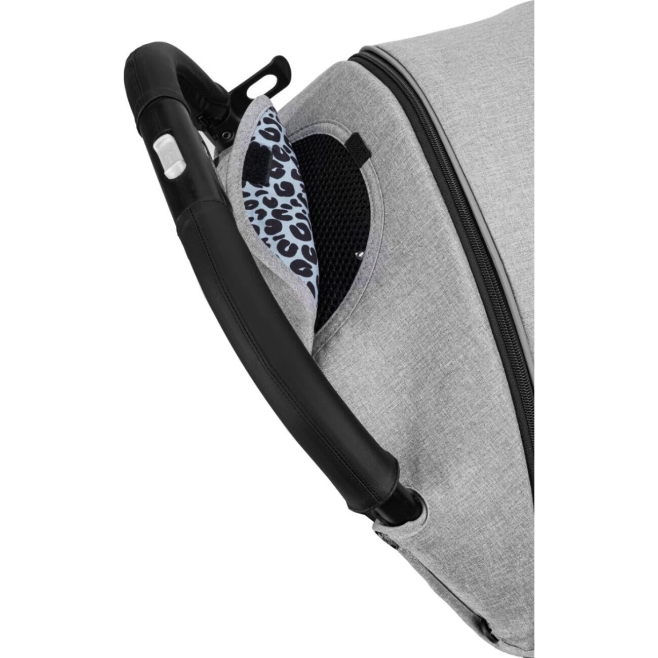 Rozšířitelná stříška chrání před sluncem a má také praktické větrací otvory. Madlo pro rodiče je potažené dvojitou vrstvou pěny a umělou kůží. Kočárek zajistíte pohodlně nožní brzdou.