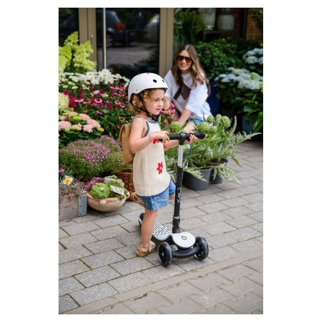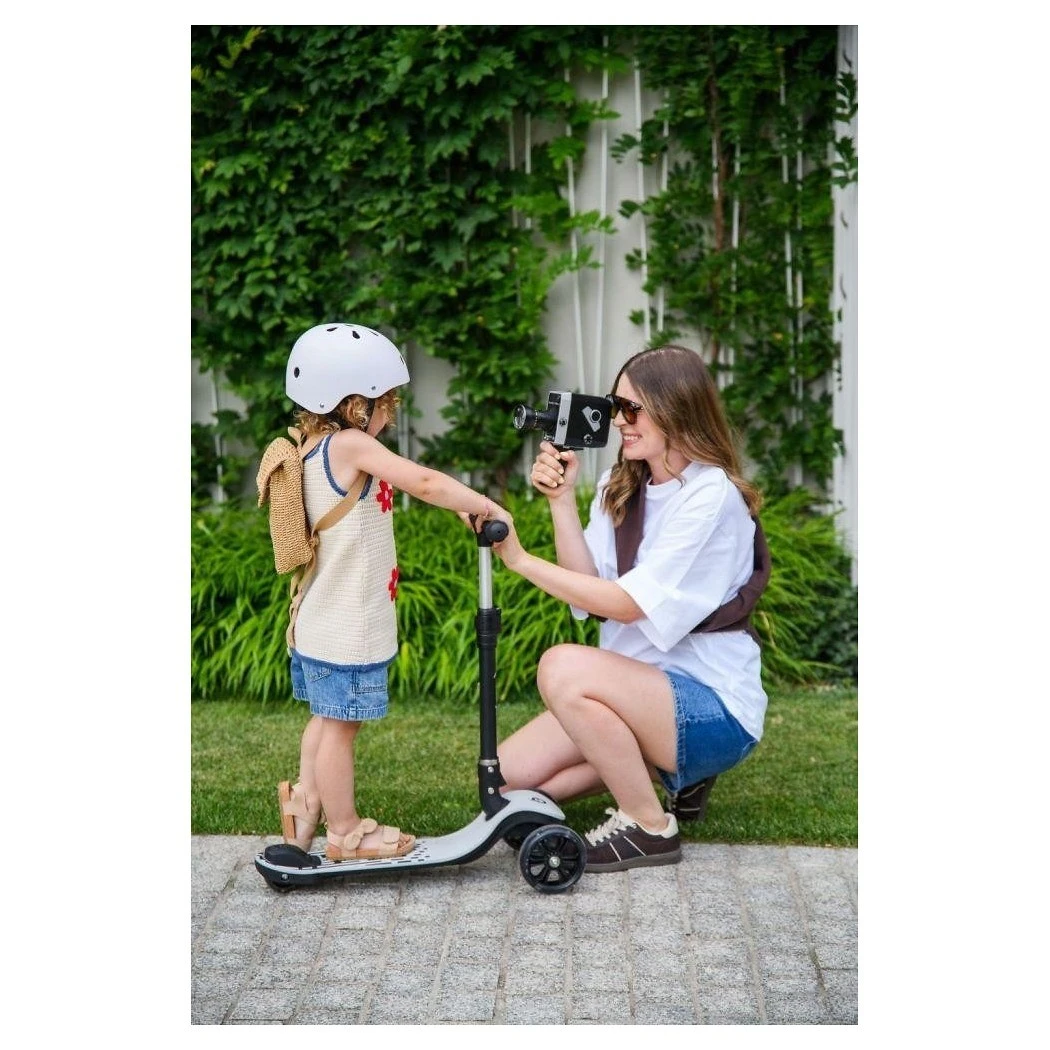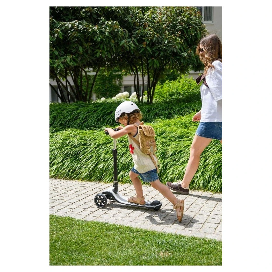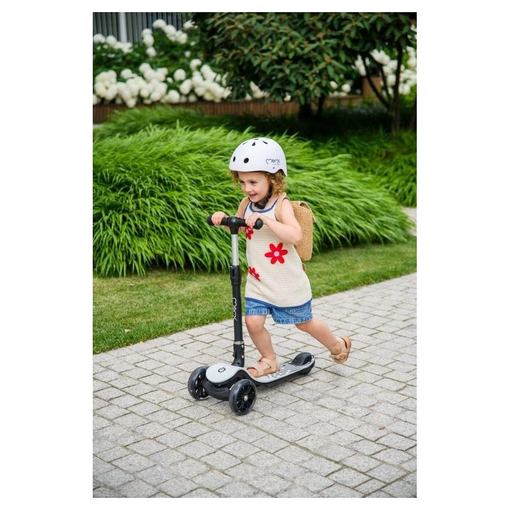 Rodiče ocení možnost koloběžku jedním tlačítkem rychle složit. Řidítka jsou nastavitelná do 3 výškových úrovní. Je vhodná pro děti cca od 3 let.