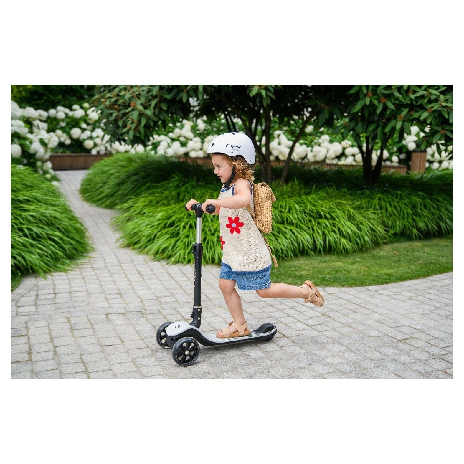 Koloběžka MoMi SAN je ideální pro trénování rovnováhy, a to díky své tříkolové balanční konstrukci.Díky třem kolečkům je stabilní a bezpečná, stejně tak k bezpečnosti přispívá i protiskluzová nášlapná deska. Rukojeti jsou potažené měkkou gumou. Děti na první pohled zaujmou blikající LED světélka v kolečkách.