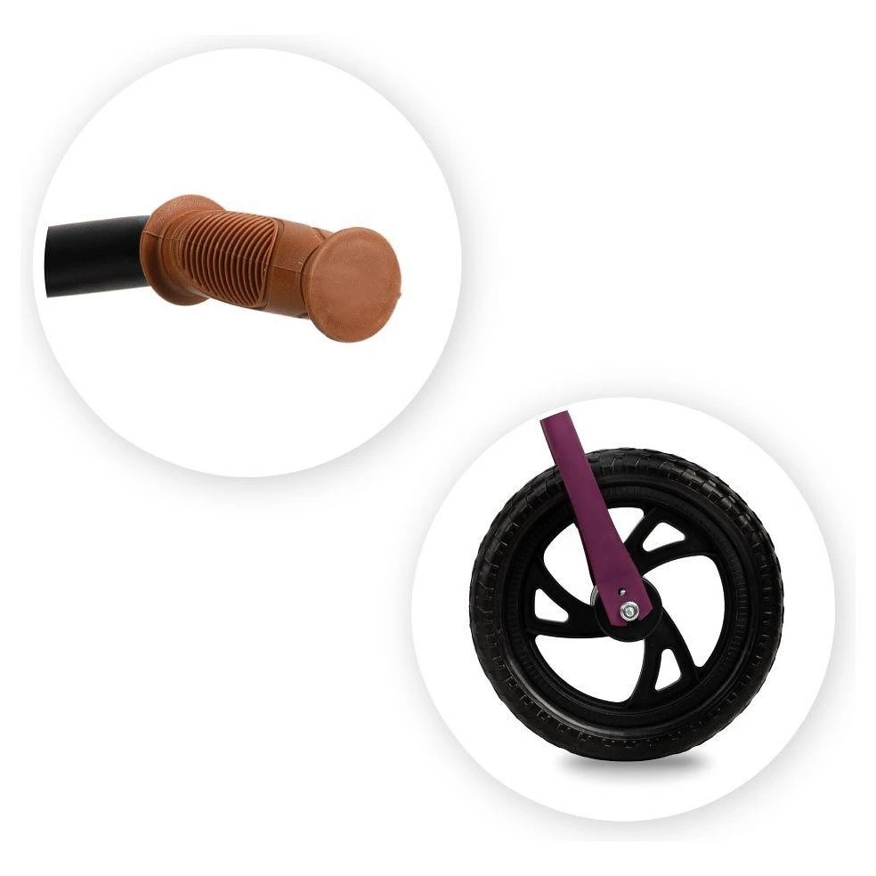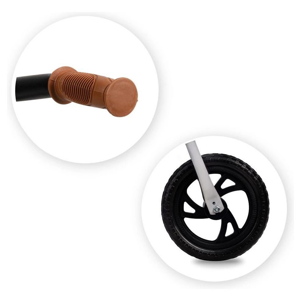 Pro zvýšení bezpečnosti je odrážedlo vybaveno brzdou, která umožňuje dítěti naučit se základům brzdění před přechodem na šlapací kolo. Široká řídítka s gumovými rukojeťmi poskytují pevný úchop a zabraňují sklouznutí rukou během jízdy.