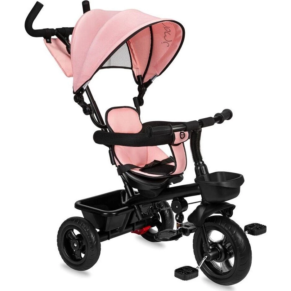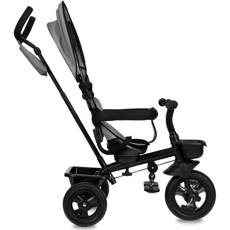 Tato tříkolka je vybavena skládací sluneční stříškou, která chrání před UV zářením a mírným deštěm, praktickým košíkem, do kterého se vejdou nejen hračky, ale i drobný nákup nebo svačina. Kvalitní PU kolečka s volnoběhem zaručují hladkou a tichou jízdu, zatímco ergonomické sedadlo a protiskluzová řídítka poskytují stabilitu a pohodlí. Díky snadné údržbě textilního čalounění vypadá tříkolka stále skvěle.