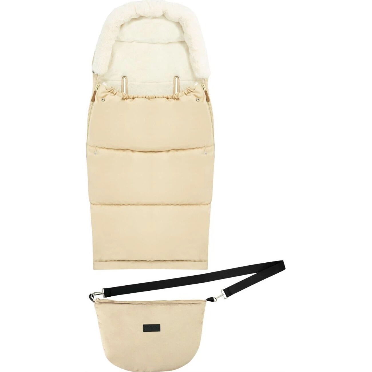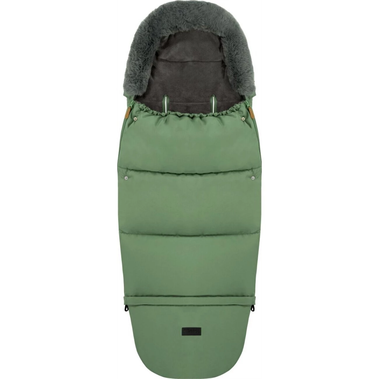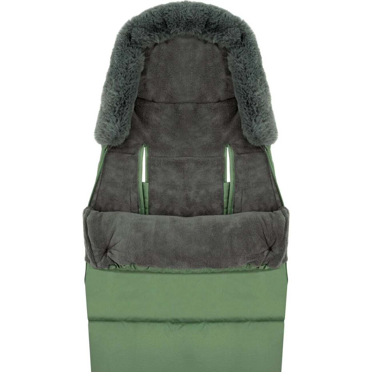 Na obou stranách fusaku je zip, který umožní pohodlně dítko usadit a připoutat. Z vnitřní strany je měkký fleece, který je velmi příjemný na dotyk. Na kapuci je odnímatelná kožešina.