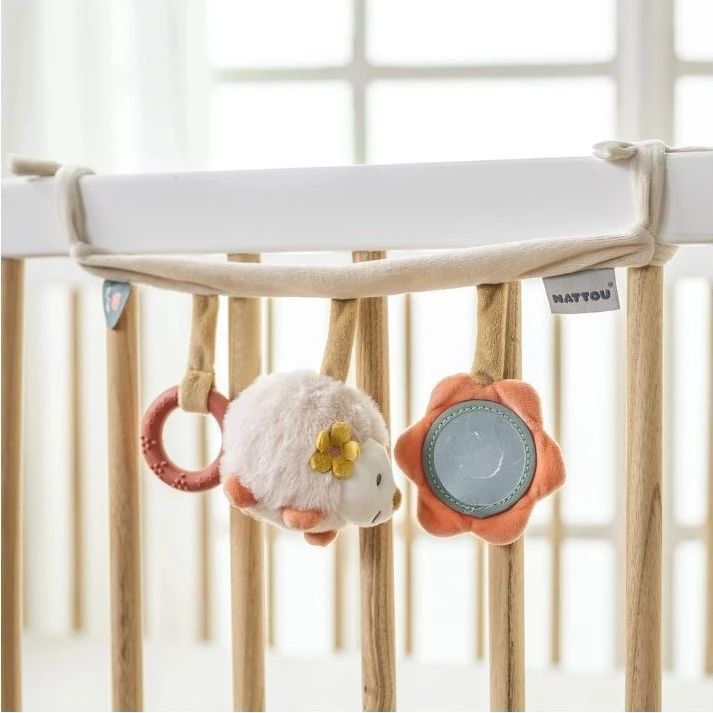 Multifunkční zábava na cestách: Tato závěsná hračka se snadno připevňuje na kočárek nebo autosedačku pomocí praktických stužek, což ji činí ideální pro zábavu na cestách.