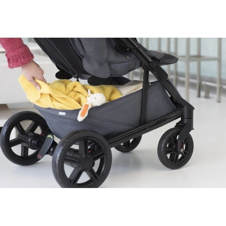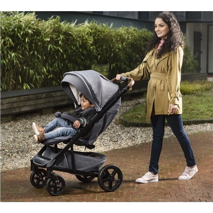 Nákup pohodlně uložíte do košíku pod dítkem. Součástí je také pláštěnka. Na konstrukci kočárku lze bez adaptérů připevnit autosedačku Nuna PIPA Icon.