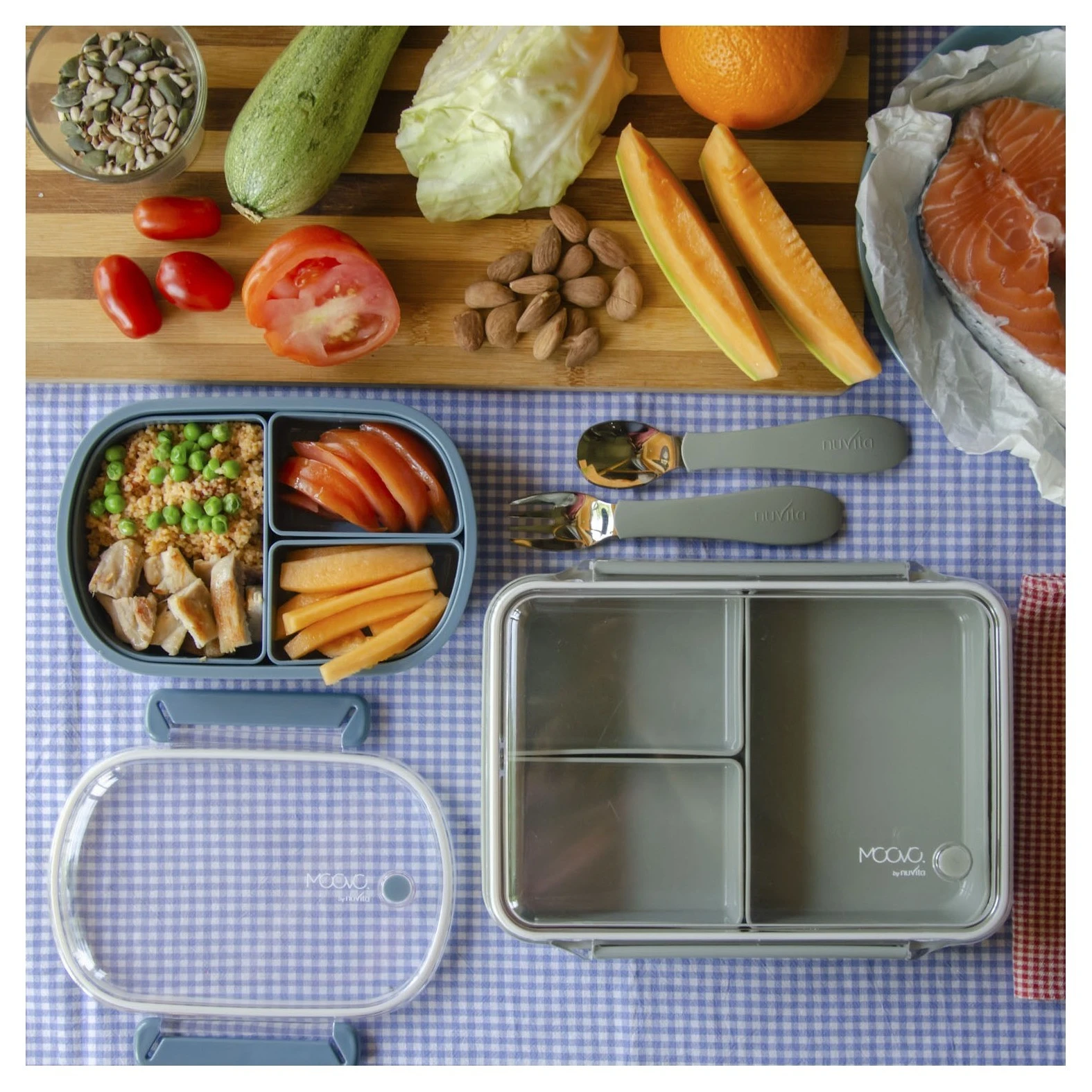 S tímto svačinovým boxem od NUVITA zajistíte svým dětem pestrou a vyváženou stravu kdykoliv a kdekoliv. Jeho praktické funkce a kvalitní zpracování oceníte při každodenním používání doma, ve škole i na výletech.
