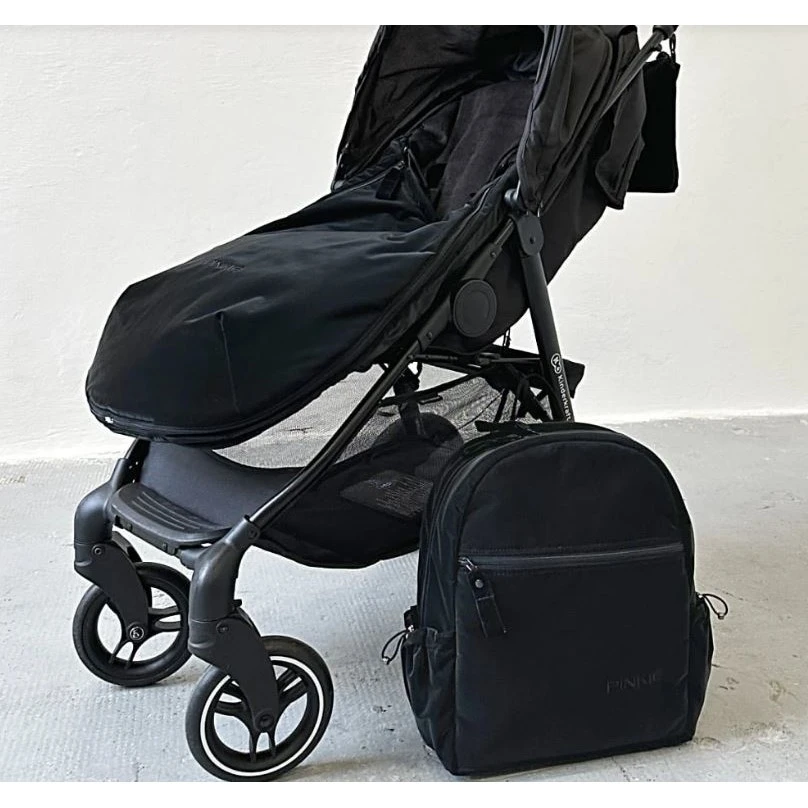 Pokud chcete batoh připevnit na kočárek, má všitá poutka, na které je možné snadno připevnit karabiny (nejsou součástí balení). Aby vám batoh při chůzi nezavázel, je možné ho díky přezkám na ramenních popruhách připnout ke konstrukci kočárku.