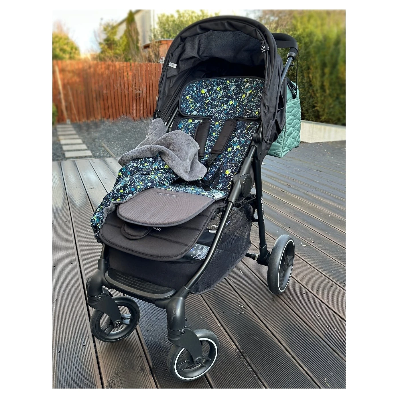 Pro zajištění stability a zabránění sklouznutí z kočárku je deka vybavena přichytávacími očky. Díky oboustrannému provedení lze deku používat z obou stran, což přidává na její variabilitě a estetickém vzhledu. Rozměry deky jsou přibližně 88 x 73 cm, což je ideální velikost pro většinu kočárků.