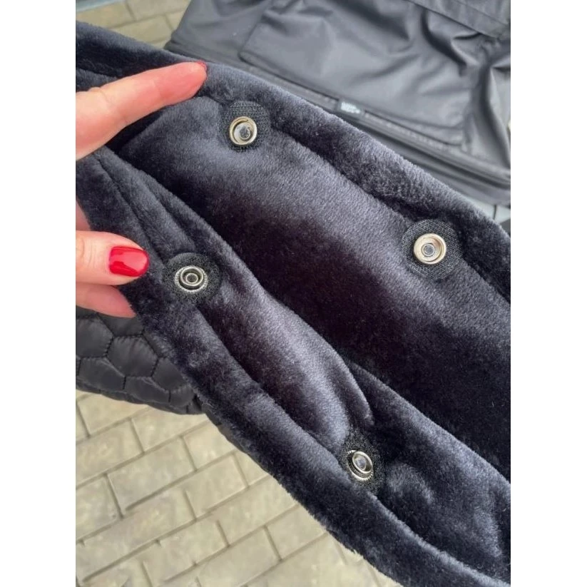 Rukávník je navržen tak, aby nebránil manipulaci s brzdou kočárku. Boční zipy zajišťují, že teplo zůstává uvnitř a zároveň umožňují snadné nasazení a sejmutí rukávníku.