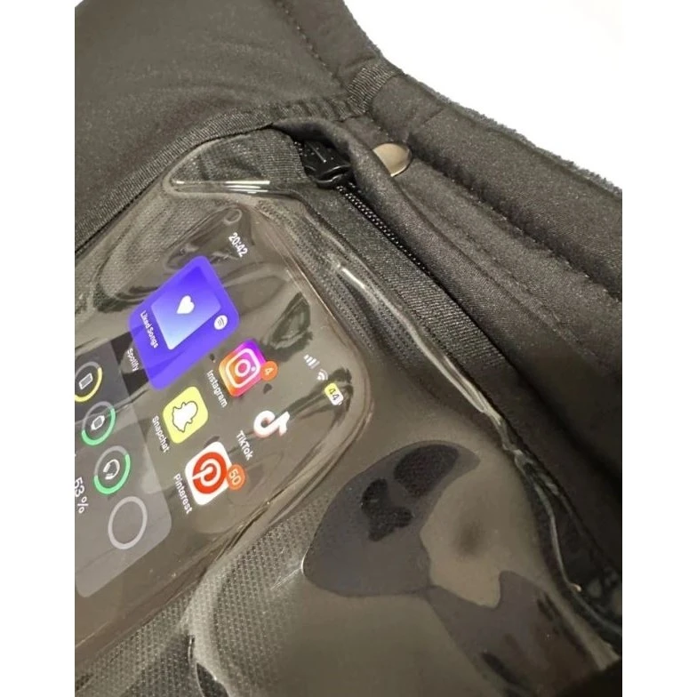Jednou z hlavních předností tohoto rukávníku je integrovaná kapsa na mobilní telefon s průhlednou fólií, která umožňuje ovládání telefonu bez nutnosti jeho vyjmutí. Kapsa je uzavíratelná na zip, což zajišťuje bezpečné uložení telefonu během procházek.
