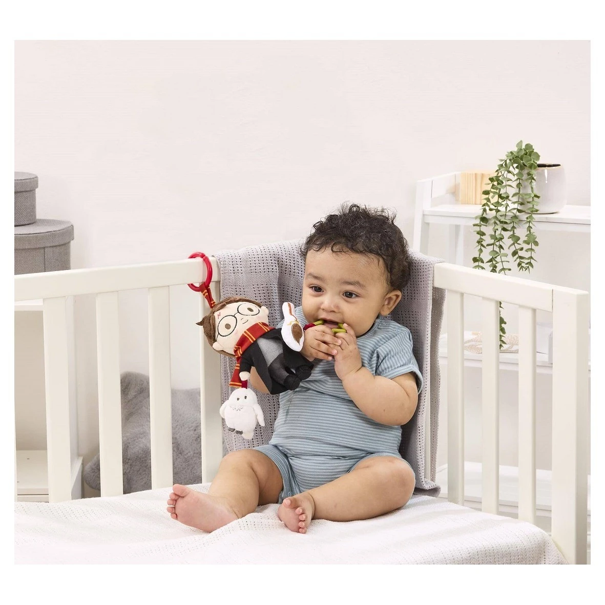 Tato interaktivní hračka je navržena tak, aby stimulovala smysly dítěte a podporovala jeho raný vývoj.Hlavní postavou je měkký plyšový Harry Potter s typickými kulatými brýlemi a jizvou ve tvaru blesku. Je oblečen do bradavické róby a na krku má barevný nebelvírský šátek. Harry drží kousátko ve tvaru hvězdy, které pomáhá při prořezávání zoubků a zároveň rozvíjí hmatové schopnosti dítěte.