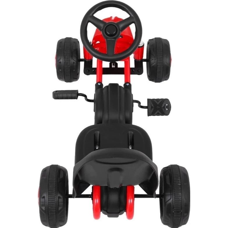 Tato šlapací motokára Ramiz je skvělou volbou pro nejmenší děti, které se teprve učí jezdit. Díky stabilní konstrukci poskytuje dětem potřebnou oporu, aby si mohly užívat jízdu a zároveň rozvíjet své motorické dovednosti a koordinaci. Motokára je navržena tak, aby podporovala rozvoj rovnováhy, což je klíčový krok v procesu učení se jízdě. Děti si mohou užívat spoustu zábavy, zatímco se učí nové dovednosti a zlepšují svou pohybovou koordinaci.Motokára je vybavena spolehlivým řetězovým pohonem, který zajišťuje hladký přenos síly z pedálů na kola. Řetězový pohon je chráněn plným pouzdrem, což zajišťuje vyšší úroveň bezpečnosti a odolnosti. Kola motokáry jsou vyrobena z kvalitního plastu a vyztužena gumičkou, což poskytuje vynikající přilnavost na různých typech povrchů. Tato kombinace zaručuje, že dítě bude mít stabilitu a bude se moci volně pohybovat bez obav z uklouznutí. Motokára je ideální alternativou k tradičním jízdním kolům, zejména pro děti, které se již mohou pohybovat samostatně, ale ještě nejsou připraveny na kolo.