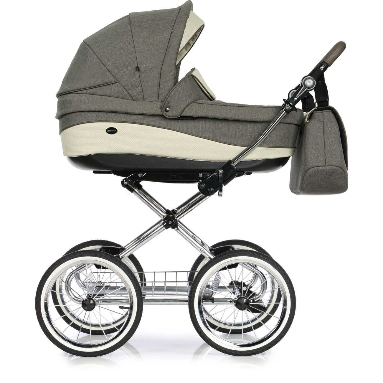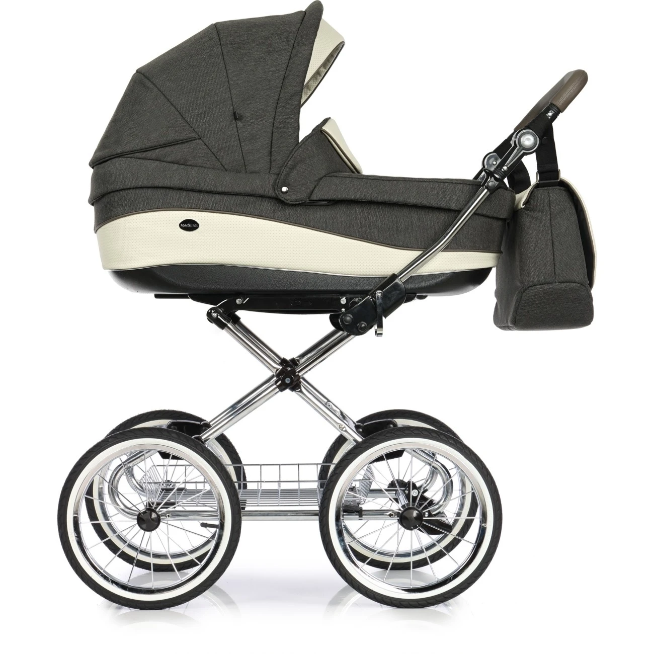 Roan Emma je nádherný kočárek, který se snaží navazovat na dřívější klasiky, ale zároveň není možné říci, že se jedná o nemoderní, nebo zastaralý kočárek.Emma je nádherně odpružená, jedná se o opravdu houpací kočárek, ve kterém děti snadno uhoupáte k spánku.
