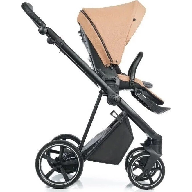 Pod kočárkem jej prostorný košík na věci, rukojeť kočárku je nastavitelná a má koženkový potah. Díky jednoduchému "click! systému na konstrukci snadno nasadíte hlubokou korbičku, autosedačku i sportovní sezení.