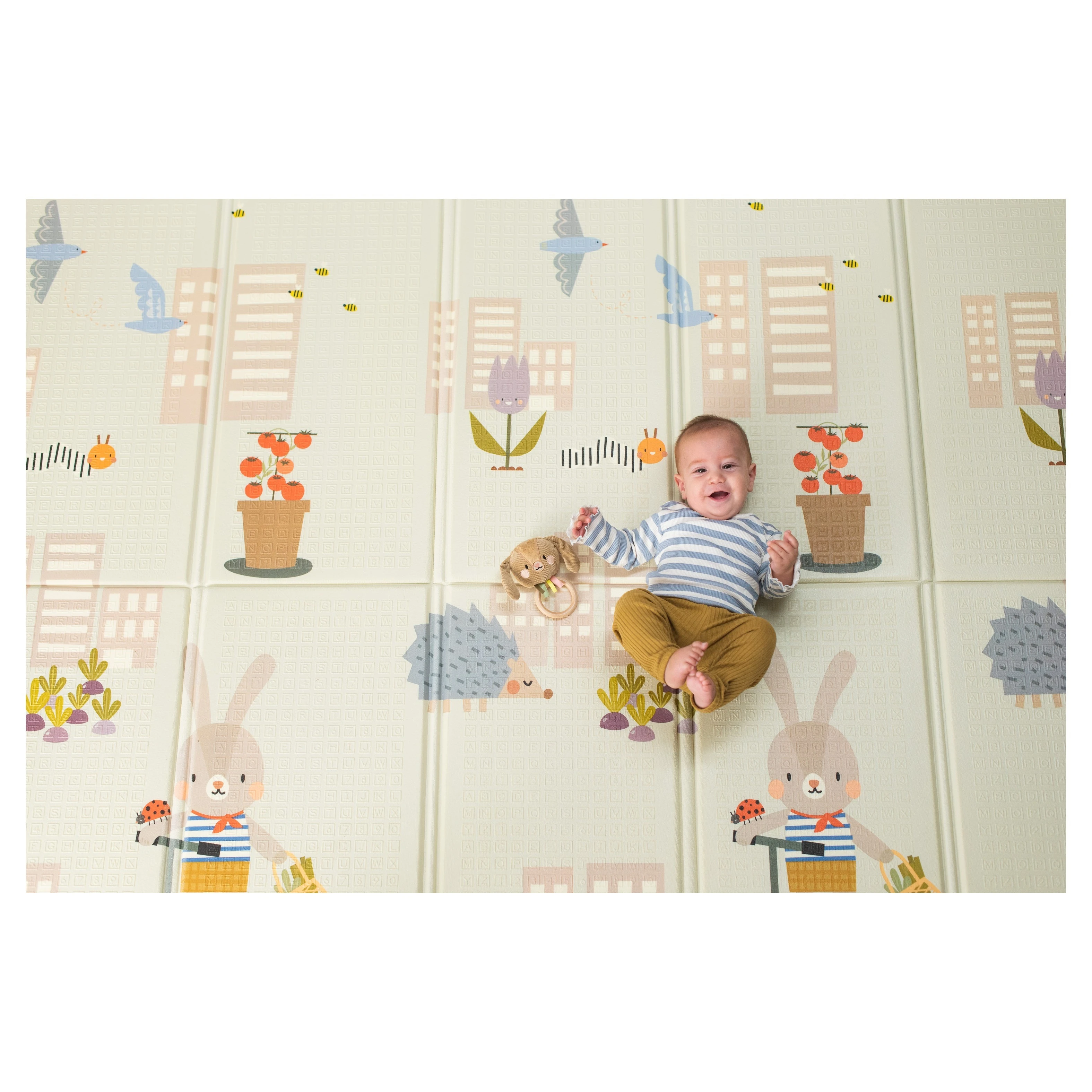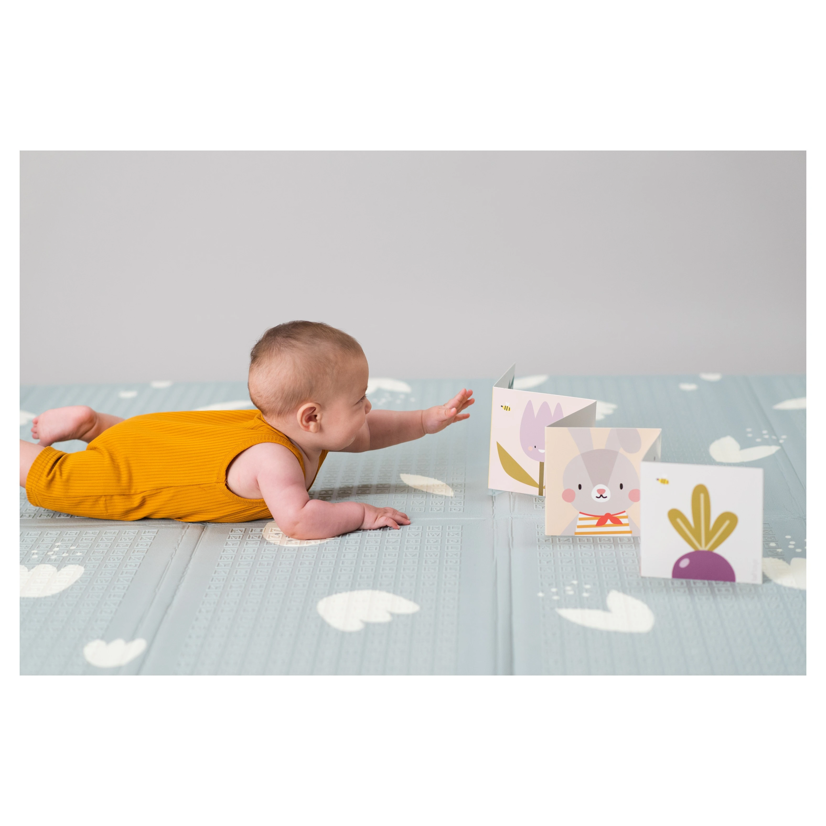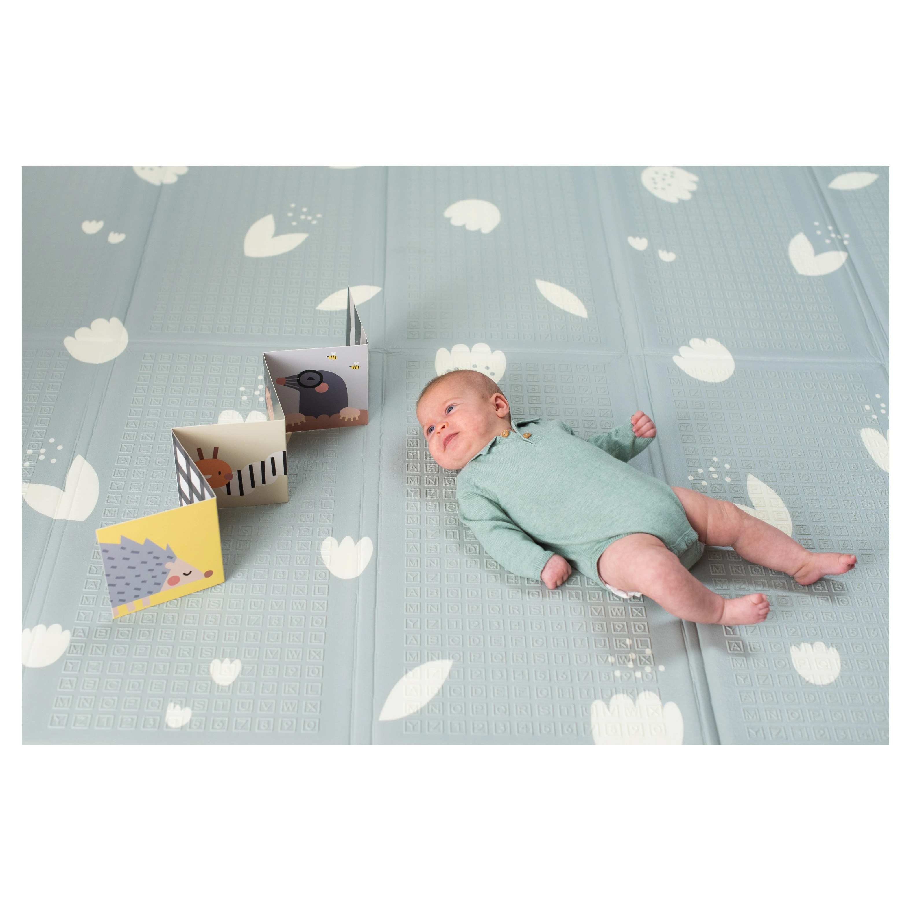 Materiál deky je 100% bezpečný pro zdraví vašeho dítěte, neobsahuje BPA, PVC, olovo, ftaláty ani rtuť. Údržba je snadná – stačí ji otřít vlhkým hadříkem. Pro snadné přenášení a skladování lze deku složit do kompaktního rozměru.