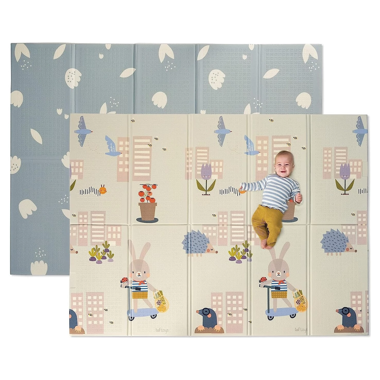 Taf Toys Hrací deka pěnová zahrada je extra velká, oboustranná a měkká hrací podložka, která poskytuje pohodlný a bezpečný prostor pro hru vašeho dítěte již od narození. S rozměry 150 × 200 cm nabízí dostatek místa pro objevování a rozvoj motorických dovedností.Díky voděodolnému povrchu je deka vhodná pro použití jak v interiéru, tak venku. Oboustranný design umožňuje výběr mezi výraznými barevnými ilustracemi na jedné straně a moderním jednoduchým vzorem na straně druhé.