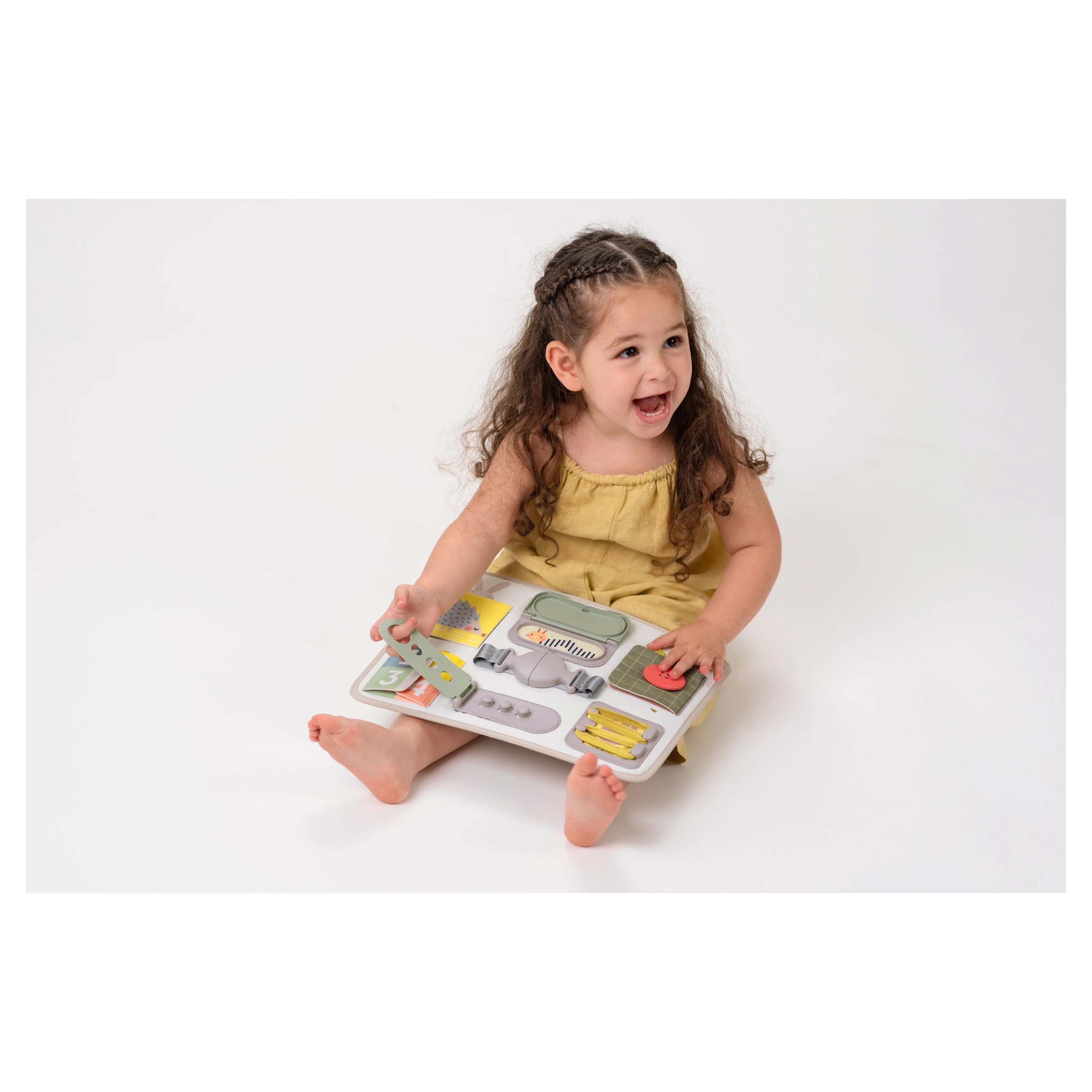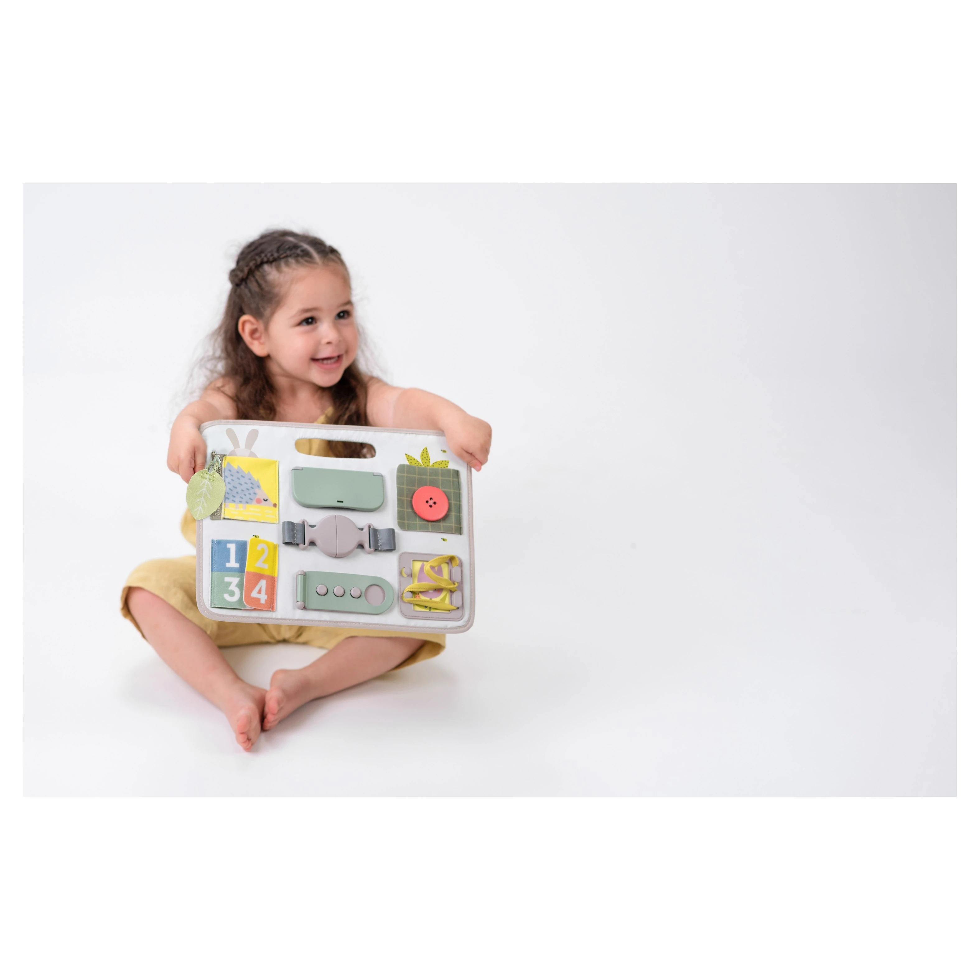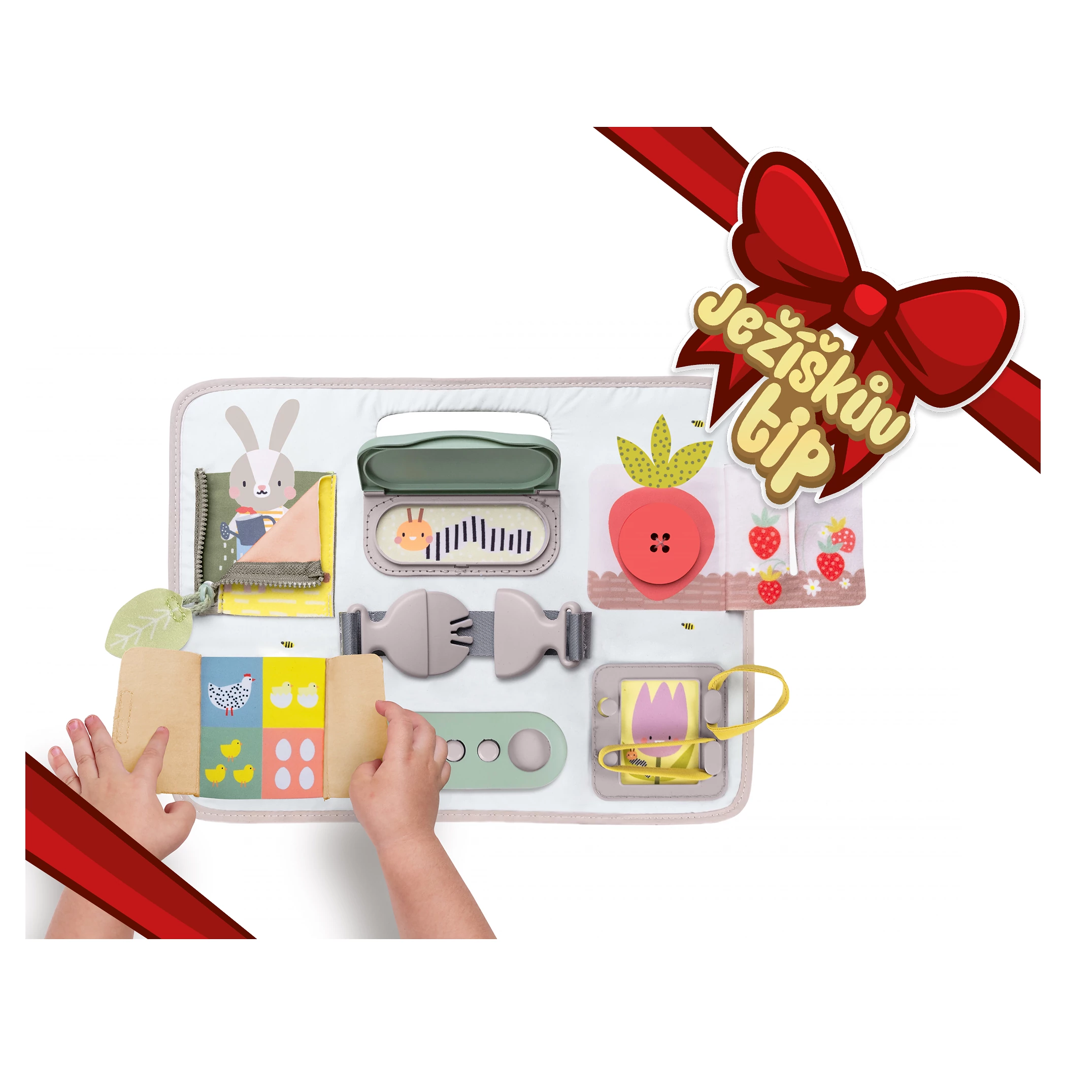 Taf Toys hrací pult s aktivitami zahrada je interaktivní hračka navržená pro podporu rozvoje jemné motoriky a koordinace oko-ruka u dětí od 18 měsíců. Tento pult nabízí širokou škálu aktivit, které děti nejen zabaví, ale také je naučí praktickým dovednostem.Mezi hlavní prvky patří zip, velký knoflík, suché zipy, tkaničky, přezka a poutko. Manipulací s těmito komponenty si děti procvičují zapínání, rozepínání, zavazování a další úkony, které jsou běžné v každodenním životě. Tímto způsobem se učí samostatnosti a zlepšují své motorické schopnosti.