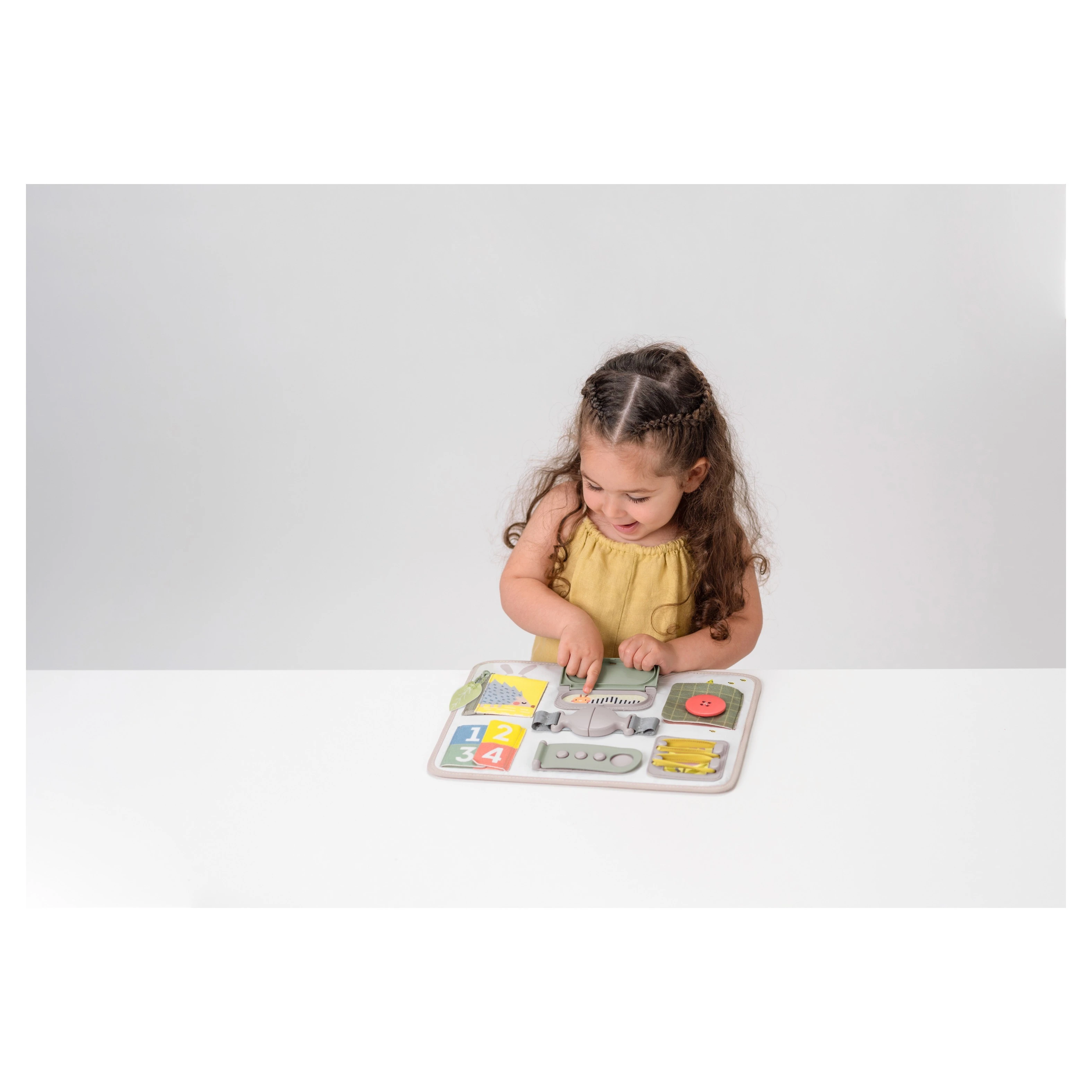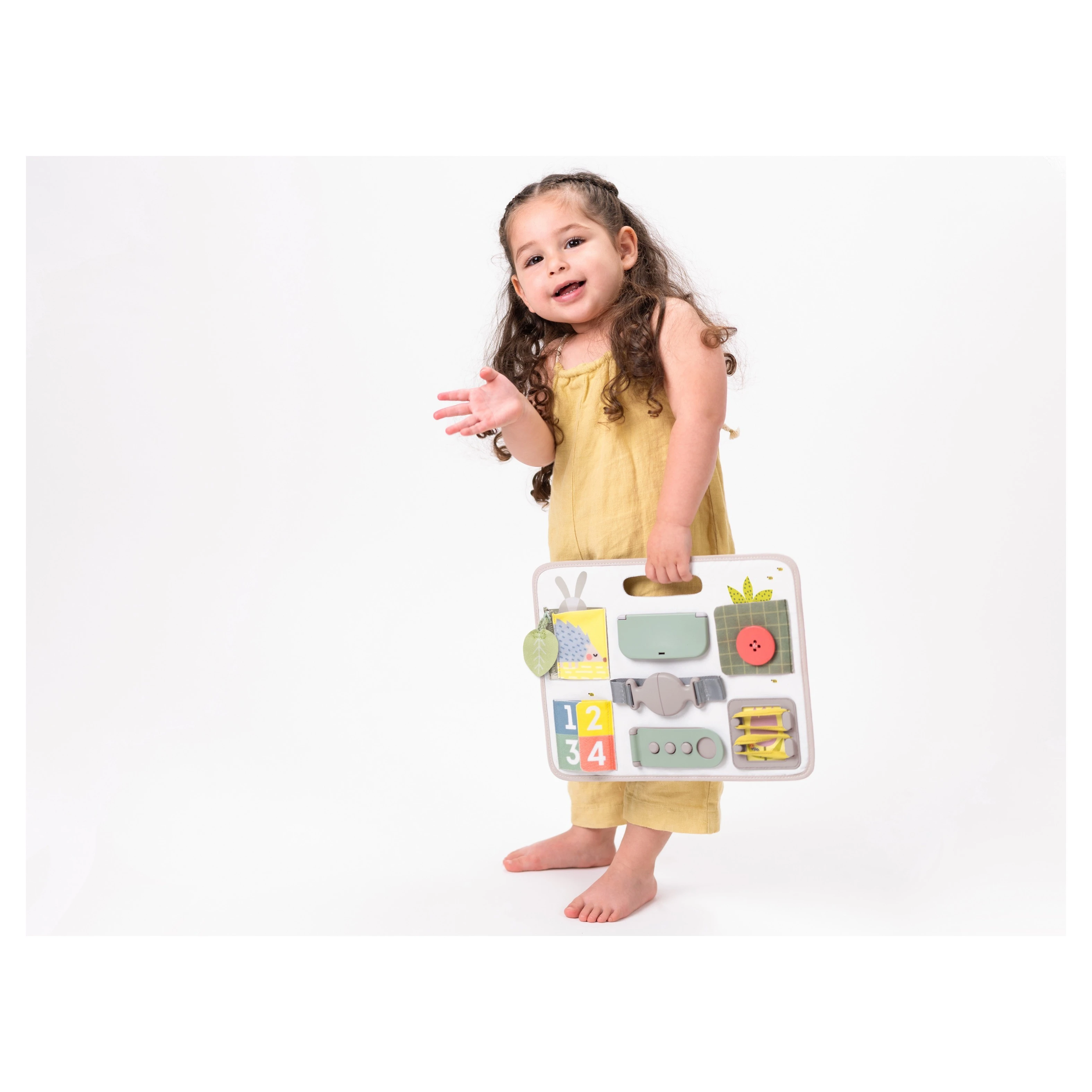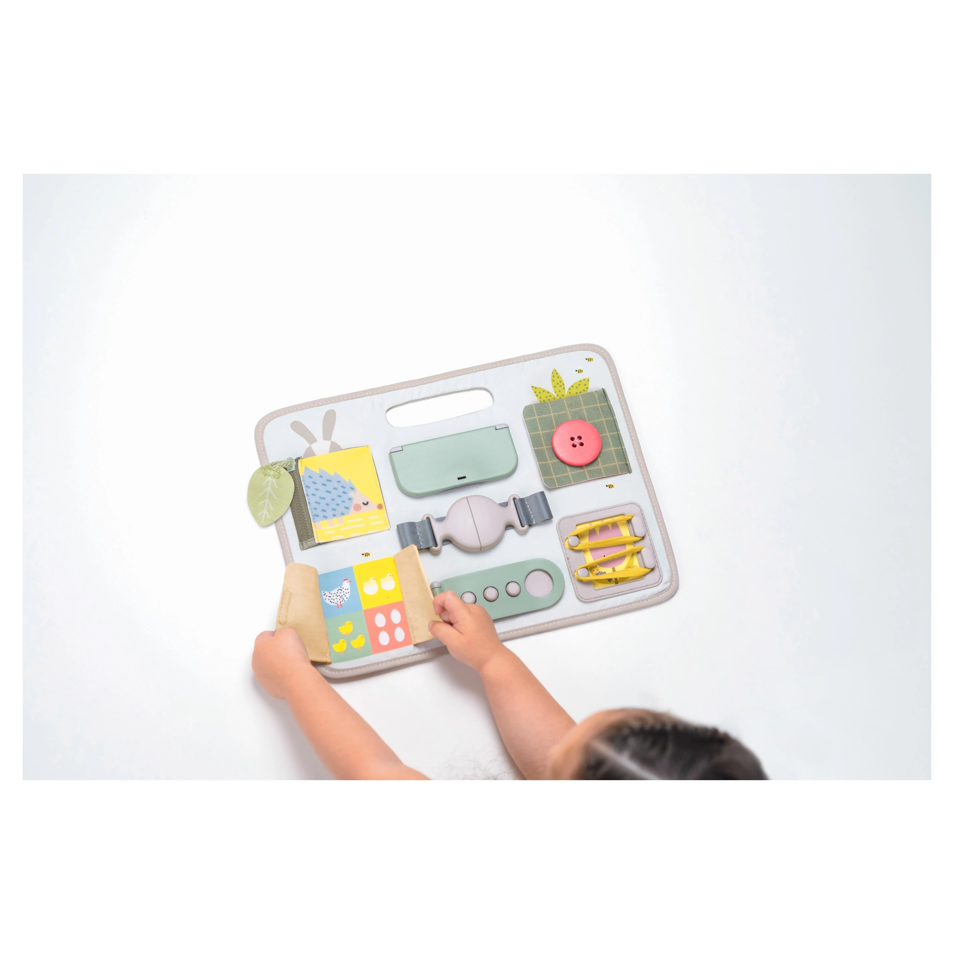 Taf Toys hrací pult s aktivitami zahrada je interaktivní hračka navržená pro podporu rozvoje jemné motoriky a koordinace oko-ruka u dětí od 18 měsíců. Tento pult nabízí širokou škálu aktivit, které děti nejen zabaví, ale také je naučí praktickým dovednostem.Mezi hlavní prvky patří zip, velký knoflík, suché zipy, tkaničky, přezka a poutko. Manipulací s těmito komponenty si děti procvičují zapínání, rozepínání, zavazování a další úkony, které jsou běžné v každodenním životě. Tímto způsobem se učí samostatnosti a zlepšují své motorické schopnosti.