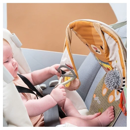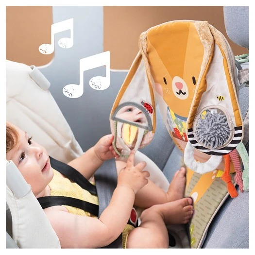 Hudební pultík do auta Bunny od značky Taf Toys je ideálním společníkem pro vaše miminko během cestování autem. Tento interaktivní pultík je navržen tak, aby zabavil dítě a zároveň podpořil jeho smyslový a motorický vývoj.Pultík se snadno připevňuje na opěrku hlavy sedadla před dítětem, které sedí v autosedačce proti směru jízdy. Díky plastovým kroužkům je instalace rychlá a bezpečná. Dítě aktivuje hudbu a světelné efekty kopáním nožiček do spodní části pultíku, což ho učí principu příčiny a následku a zároveň posiluje jeho motorické dovednosti.