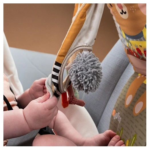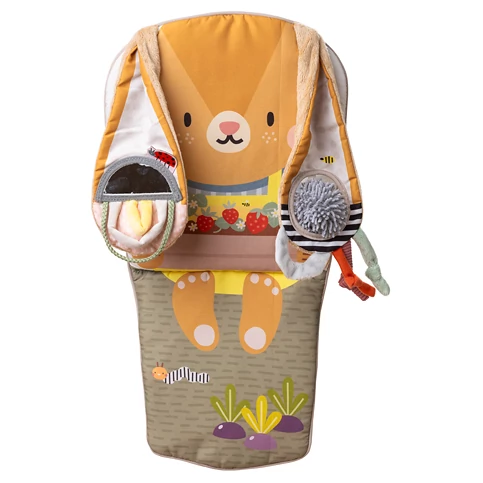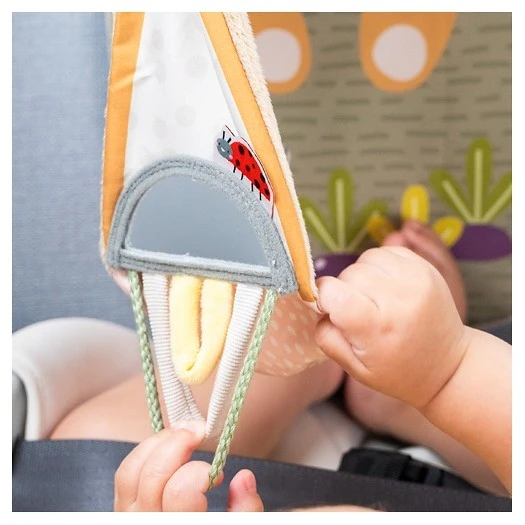 Pultík nabízí různé aktivity a textury, včetně bezpečného zrcátka, které lákají ke zkoumání a stimulují smysly dítěte. Barevné provedení a roztomilé motivy zajíčka přitahují pozornost a podporují vizuální vnímání.
