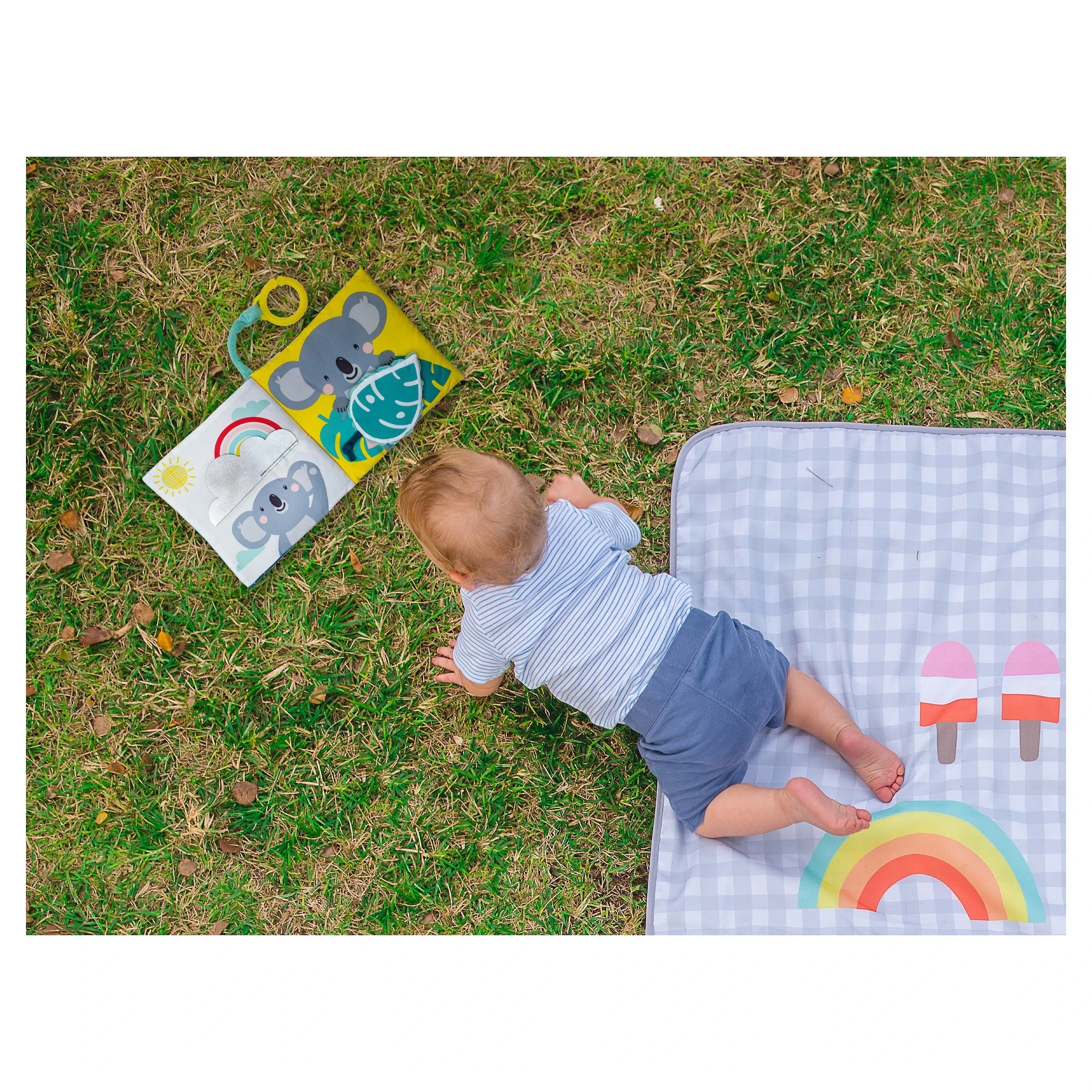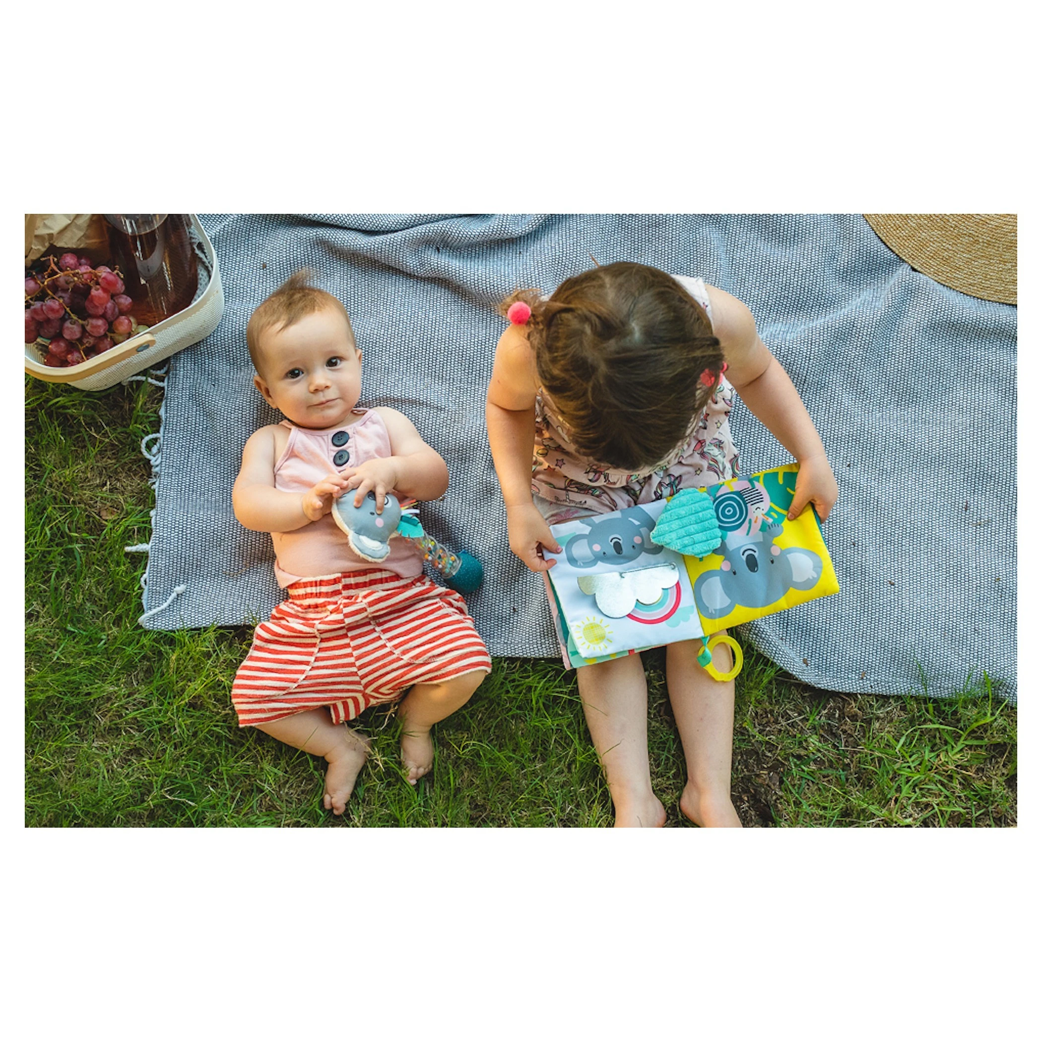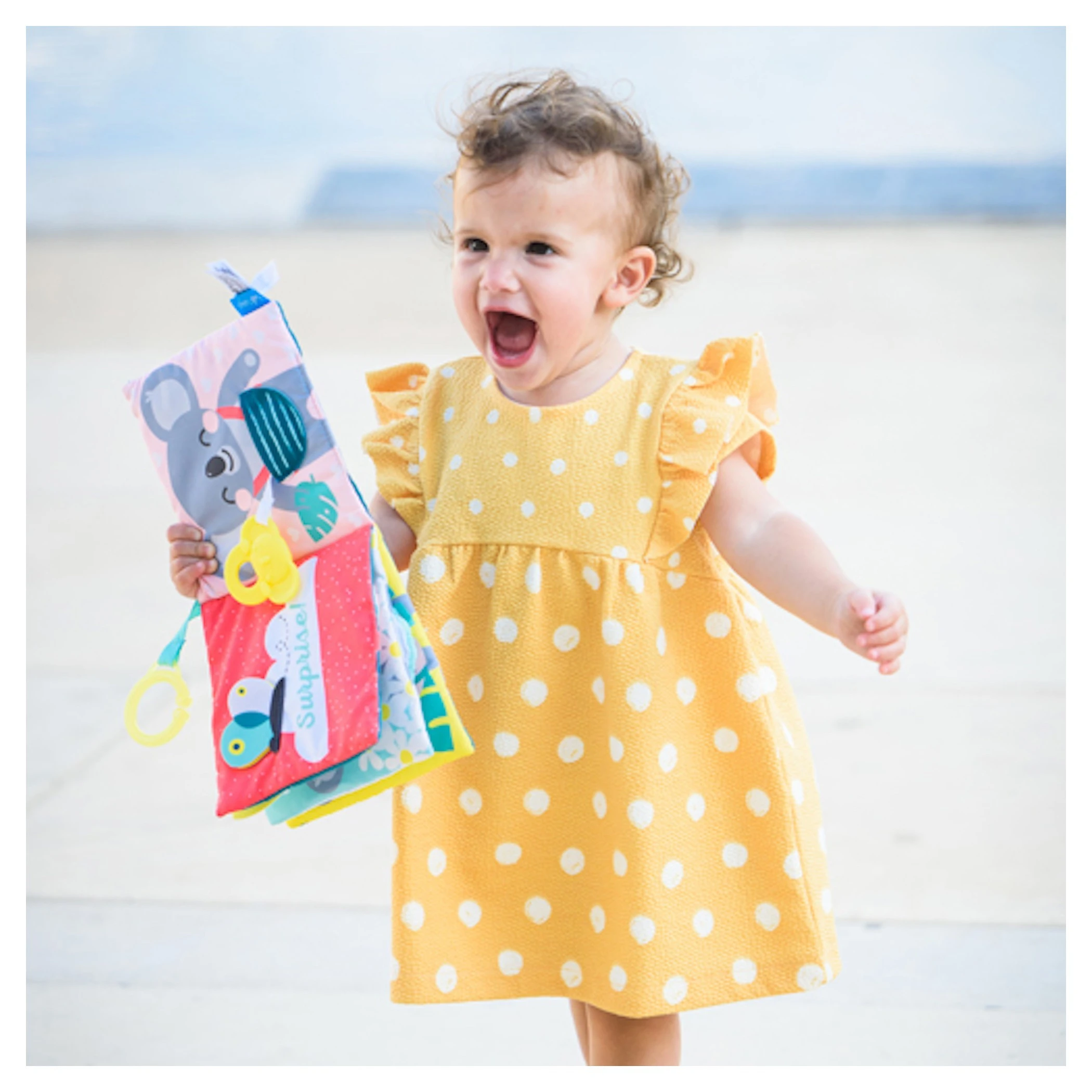 Textilní knížka s aktivitami Taf Toys Where Is Joey je ideální hračkou pro rozvoj smyslů a motoriky vašeho dítěte. S rozměry 15 x 15 cm je navržena tak, aby byla snadno uchopitelná pro malé dětské ruce.Každá stránka této knížky je vybavena různorodými aktivitami a texturami, které podporují zkoumání a stimulují hmatové vjemy. Po stlačení stránek se ozve jemné šustění, které upoutá pozornost dítěte a podporuje jeho sluchové vnímání.