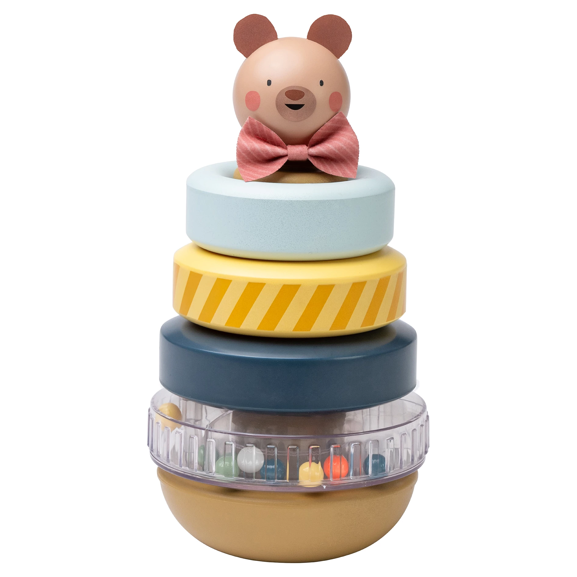 Taf Toys pyramida medvěd je barevná a smyslově podnětná hračka navržená pro podporu jemné motoriky, koordinace oko-ruka a prvního logického uvažování dítěte.Tato pyramida obsahuje čtyři kroužky různých velikostí a textur: